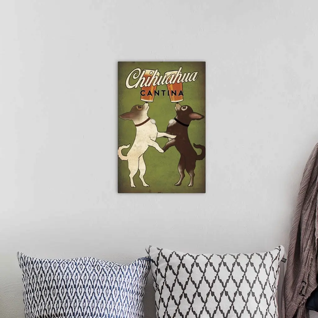 Illustration of two chihuahuas balancing beers on their noses with "Chihuahua Cantina" written at the top.