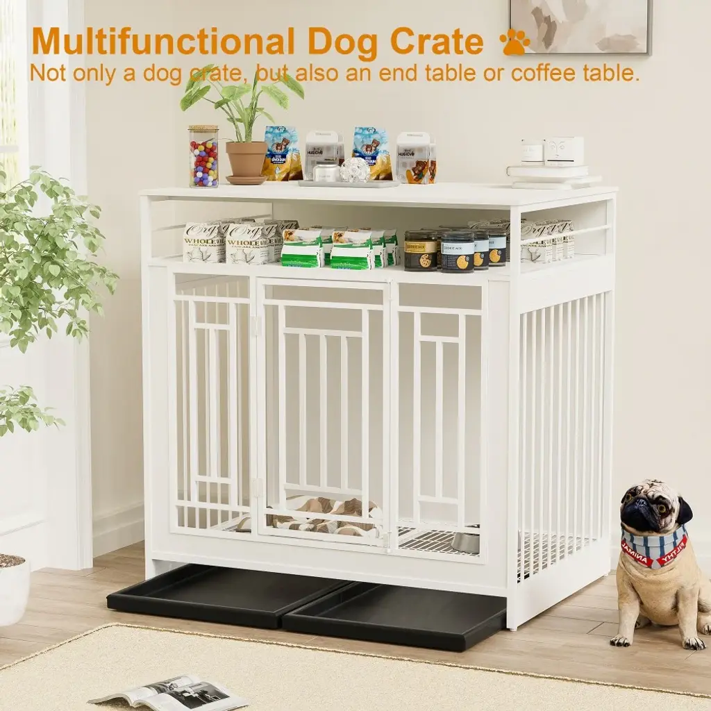 Double Door Dog Kennel With Three Drawers Storages - Assembly Required