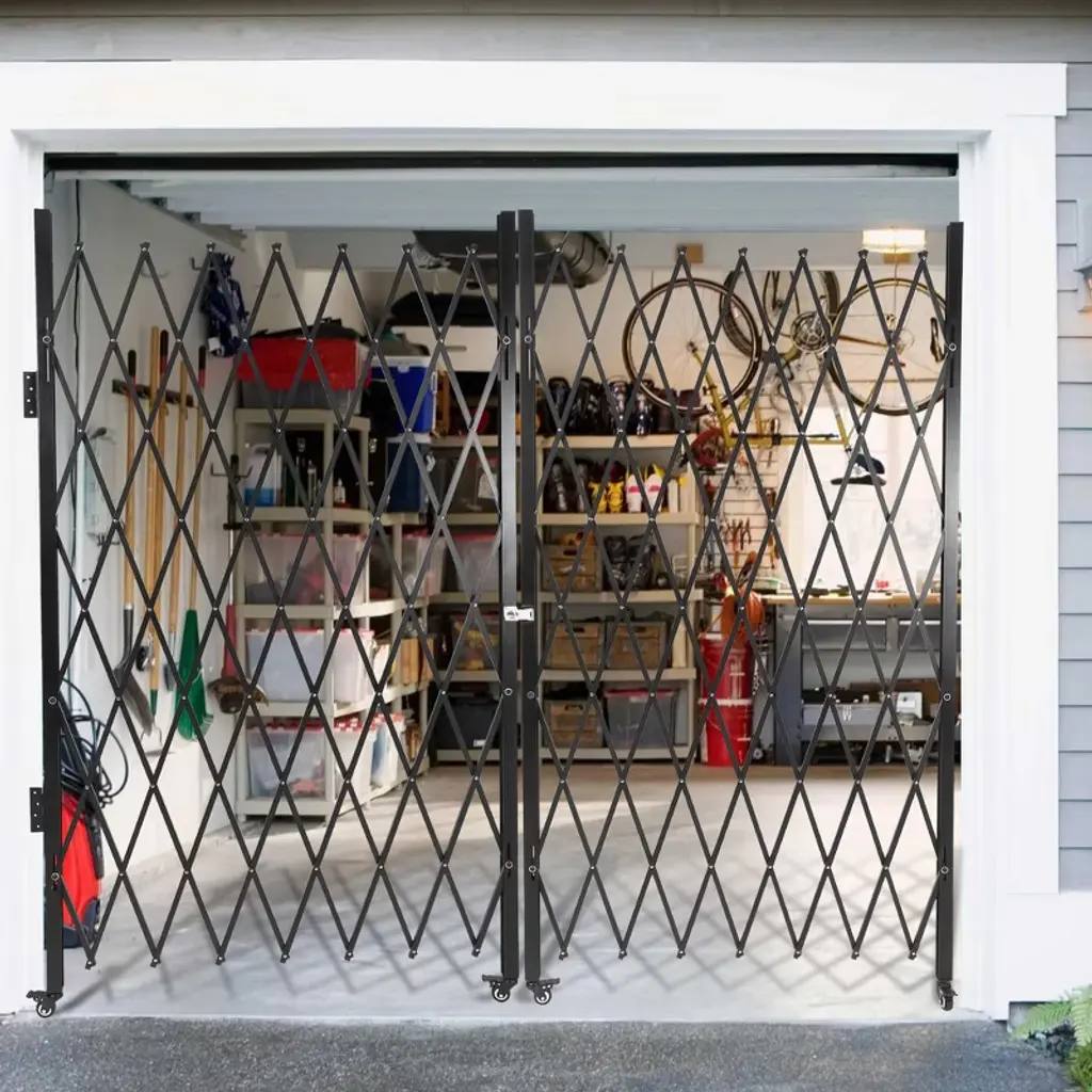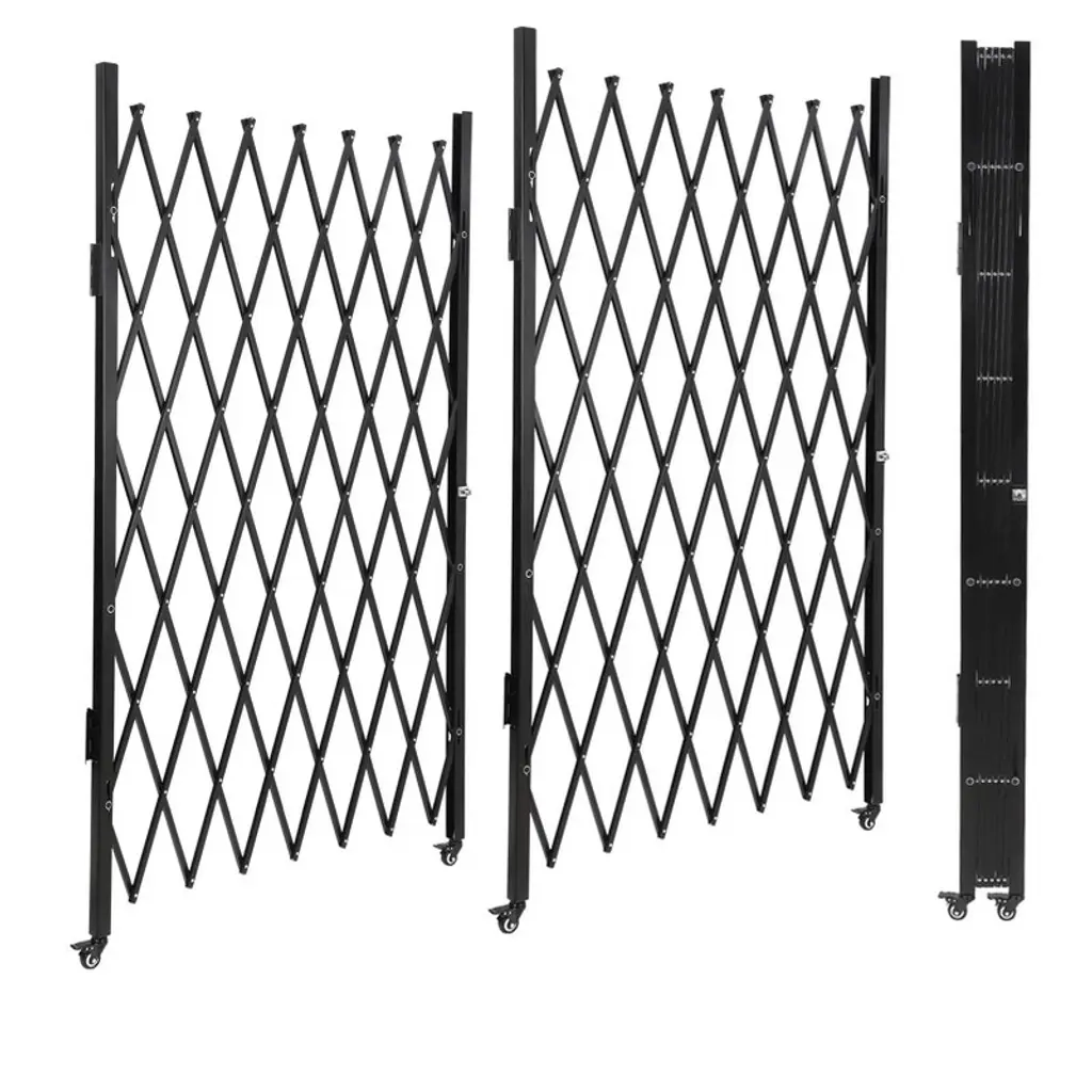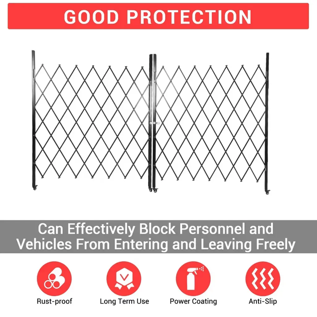**Heavy-Duty Expandable Security Gate with Locking Casters**Product Specifications:- Material: 3/4" 14-Gauge Steel Channel Construction- Available Sizes: 85"H x 150"W, 61"H x 122"W, 50"H x 75"W, 50"H x 67"W, 50"H x 43"W, 61"H x 71"W- Finish: Protective Black Powder-Coating- Special Features: 360¡ã Locking Casters, Integrated Padlock System, Tool-Included Setup- Weight Capacity: Industrial-Grade Load BearingKey Features:1. **Multi-Size Adaptive Configuration** Available in six size variations (85"H x 150"W to 50"H x 43"W) to perfectly secure openings of different dimensions. The scissor-style expansion mechanism ensures tight fitment for driveways, warehouses, and commercial entryways without custom installation.2. **Industrial-Strength Steel Construction** Fabricated from robust 3/4" 14-gauge steel channel with reinforced cross-bracing for maximum security. The anti-impact design features rust-resistant powder-coating that withstands weather elements and attempted intrusions, providing long-term property protection.3. **Smooth Mobility with Positive Locking** Four 360¡ã swivel casters enable effortless movement and positioning by a single person. Each caster includes individual locking mechanisms that securely anchor the gate in place, preventing unintended displacement while maintaining full mobility when needed.4. **Integrated High-Security Locking System** Comes complete with built-in padlock hasp and included high-security padlock with keys. The instant-locking design allows for quick securing in expanded position, preventing unauthorized access while maintaining visible deterrence and ventilation.5. **Universal Commercial/Residential Application** Provides physical security for large industrial driveways, warehouse access points, and commercial storefronts, while equally suitable for residential garages, pool areas, and basement security. The open-barrier design maintains visibility and airflow while creating effective access control.Included Components:- 1 x Expandable Security Gate- 4 x 360¡ã Locking Casters- 1 x High-Security Padlock with Keys- All Necessary Installation HardwareNote: Professional-grade security solution requiring minimal maintenance. Powder-coated finish ensures durability in outdoor conditions. Suitable for both temporary and permanent security applications.