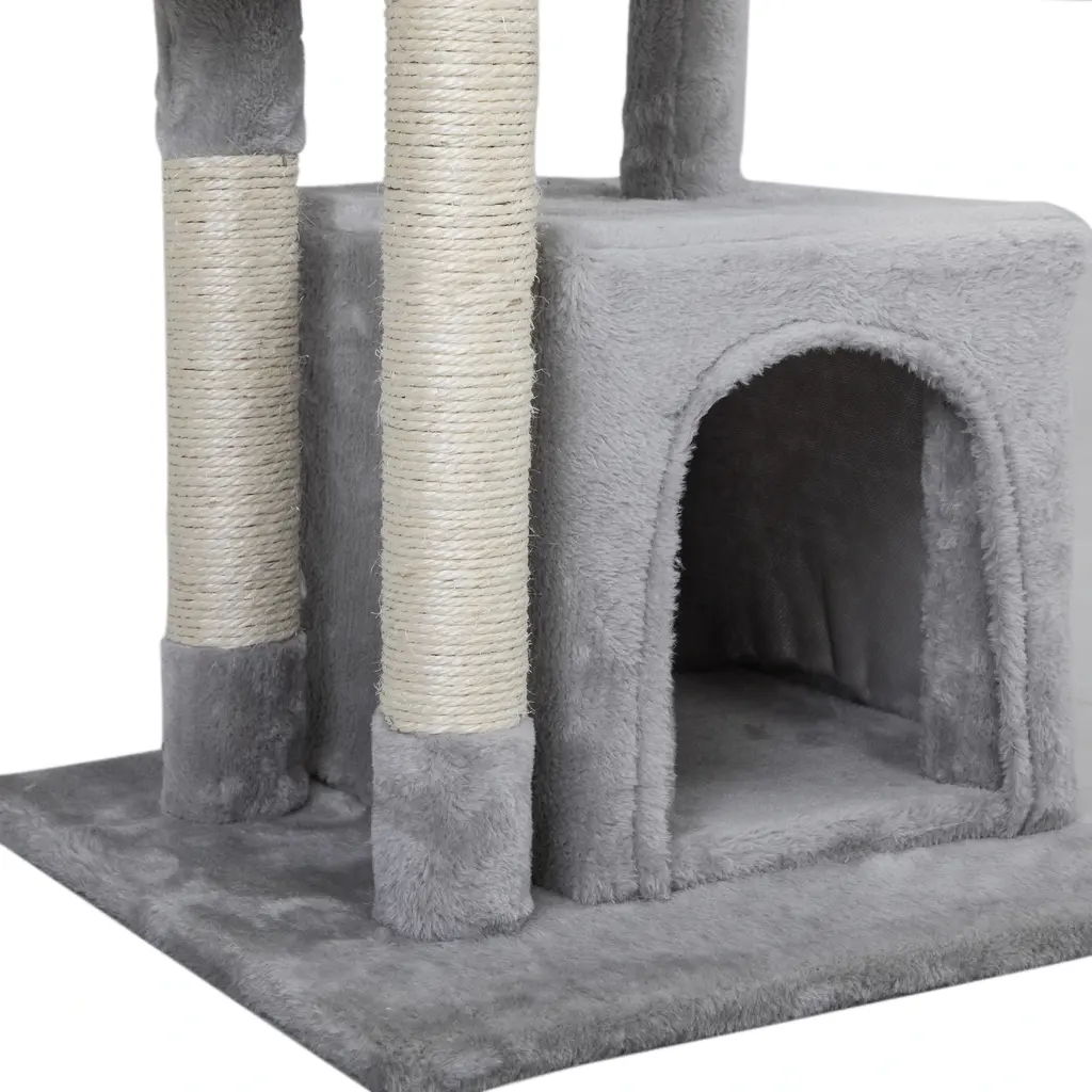 Double Level Cat Tree Stand House Furniture Kittens Activity Tower Posts Kitty Pet Play House - Light Gray - Light Gray