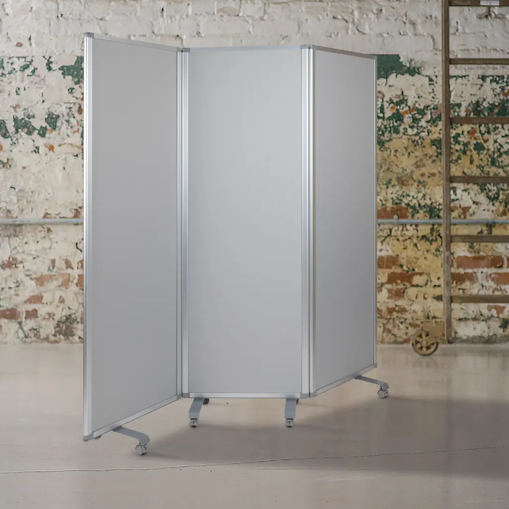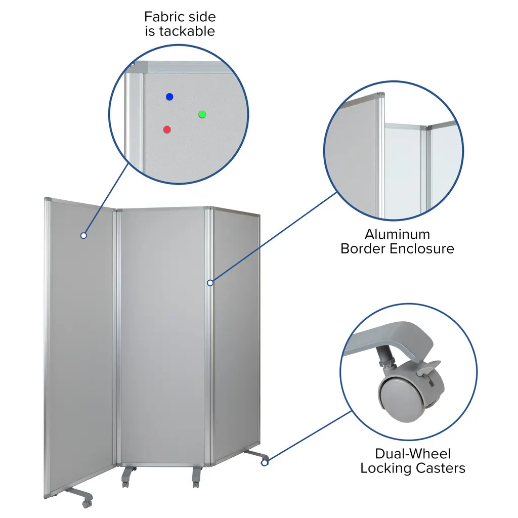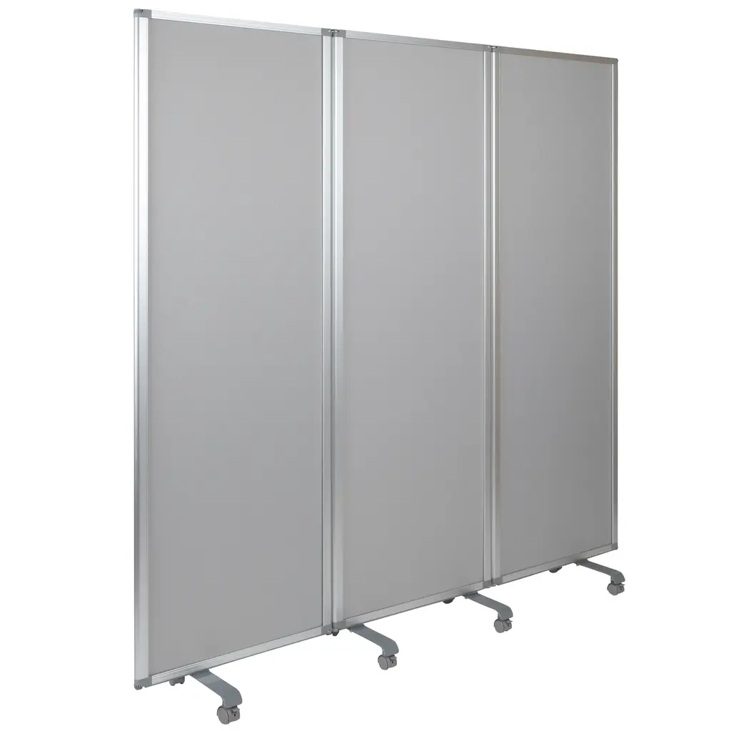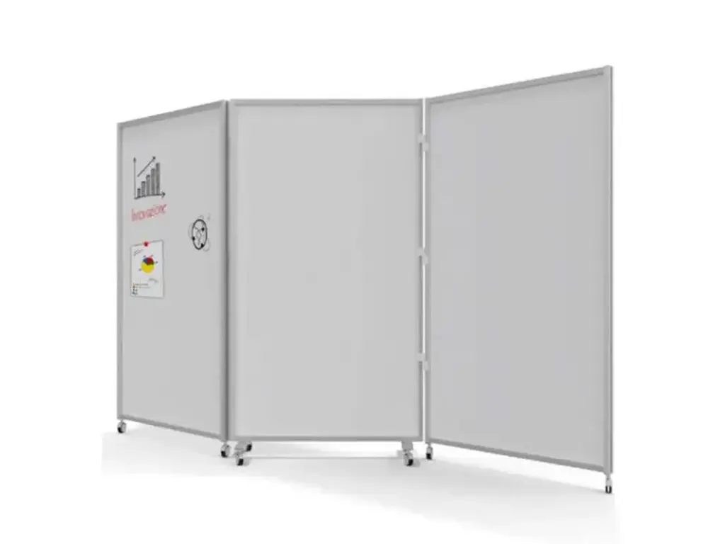 Block off areas in your office or classroom with a 3 section mobile partition. This mobile marker board allows you to become more interactive in the classroom or create privacy between cubicles and open spaces. The cloth partition is tackable to post notes using push pins. Plan out your day or prepare for upcoming meetings by being able to write out your thoughts and post notes. You'll have a creative space when people stop by your desk or office to formulate ideas.