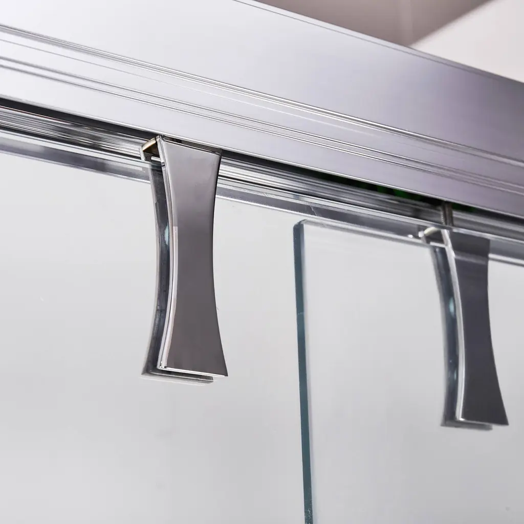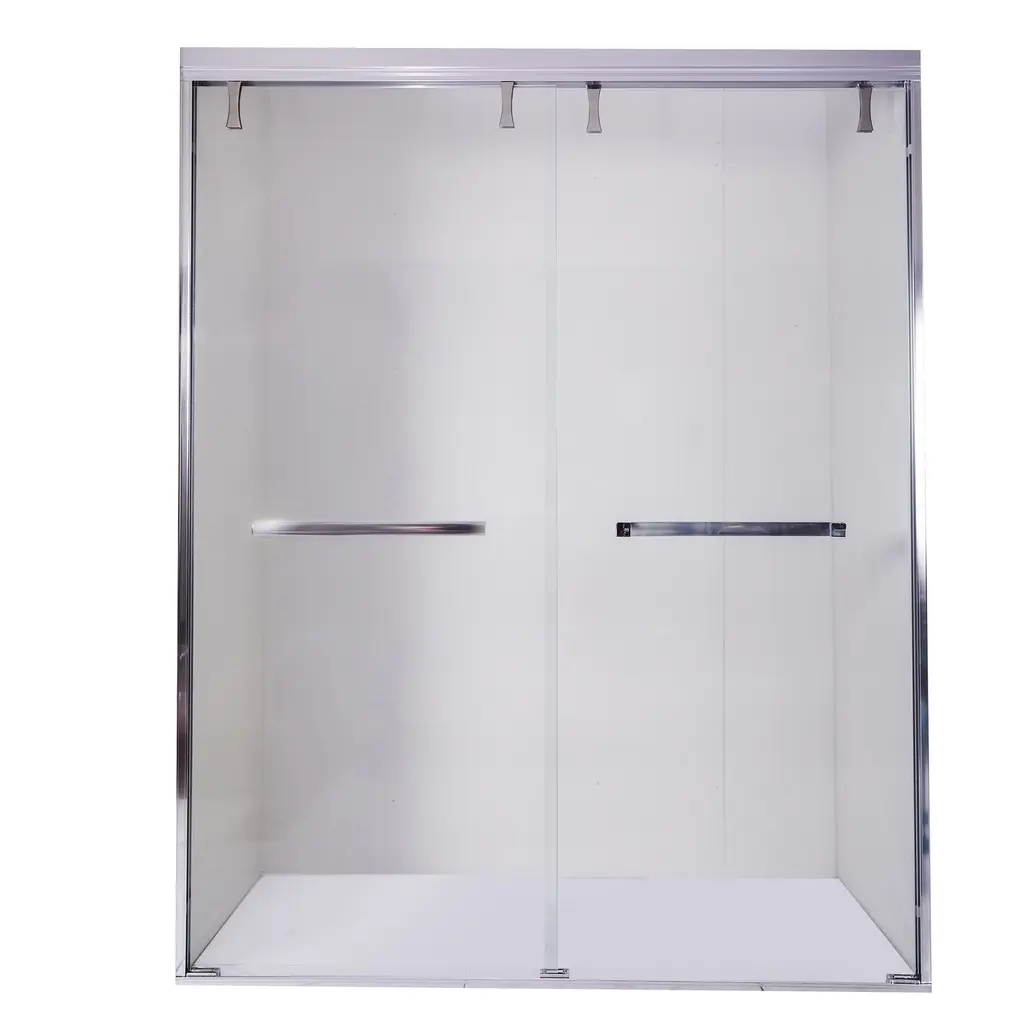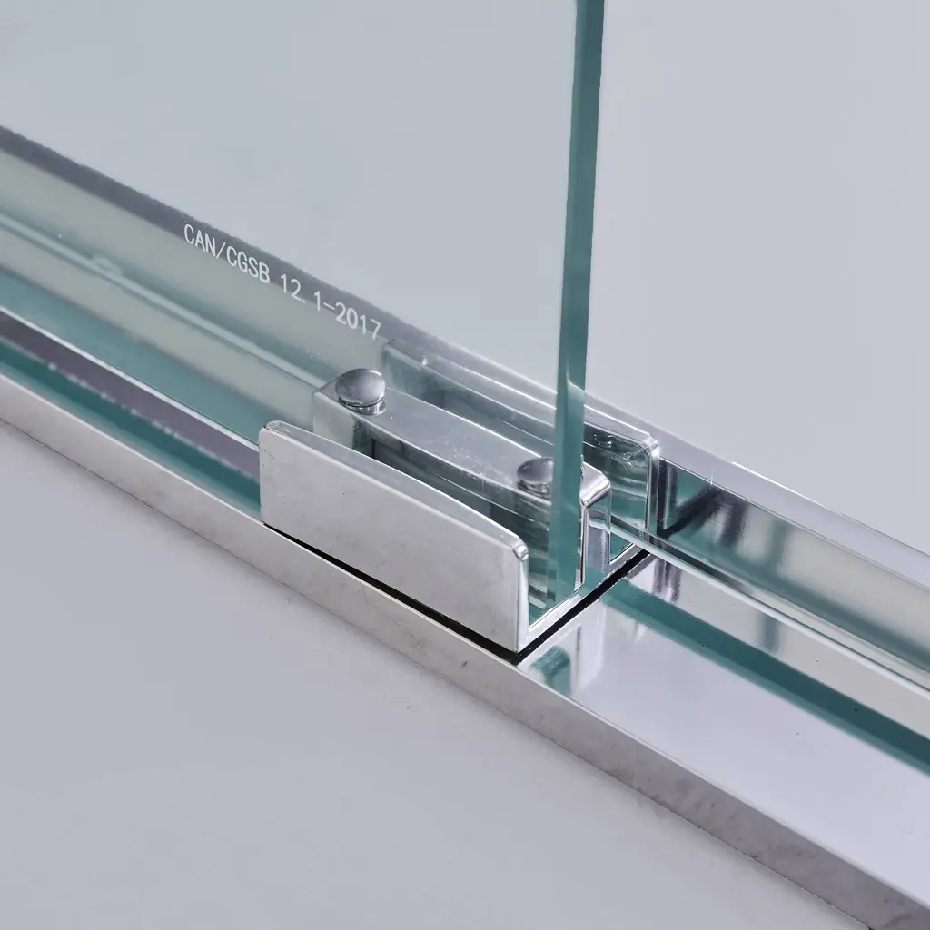 Our top rail fixings guarantee stability and safety, ensuring our shower doors withstand vigorous use, staying durable and worry-free.Bypass shower door is designed with a user-friendly door handle,easy to open and close,bringing you ultimate convenience and comfort.Our tempered glass adds a single-side explosion-proof membrane to its already strong foundation to withstand powerful impacts!Our bypass shower doors come with waterproof seals, keeping moisture in the bathroom for a dry and comfortable showering experience.[Sleek and Modern Design] Enjoy a contemporary bathroom upgrade with our Framed double sliding shower door, adding elegance to any space.[Durable Construction] Crafted with high-quality Aluminium Alloy frame material, ensuring long-lasting performance and resistance to rust and corrosion.\[Enhanced Safety Features] The explosion-proof film on the glass surface provides added safety and peace of mind, minimizing the risk of accidents and breakage.[Optimal Thickness] The 5/16" (8mm) glass thickness offers both durability and transparency, creating a luxurious and spacious showering experience.