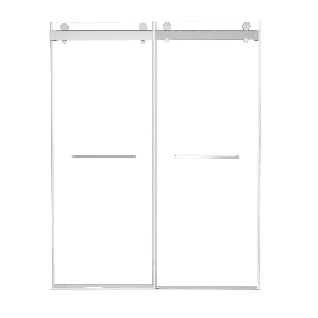 Double Sliding Frameless Shower Door With Clear Glass - 60" X 79" - Brushed Nickel