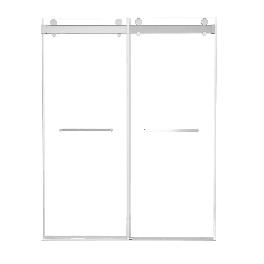 Double Sliding Frameless Shower Door With Clear Glass - 72" X 79" - Brushed Nickel