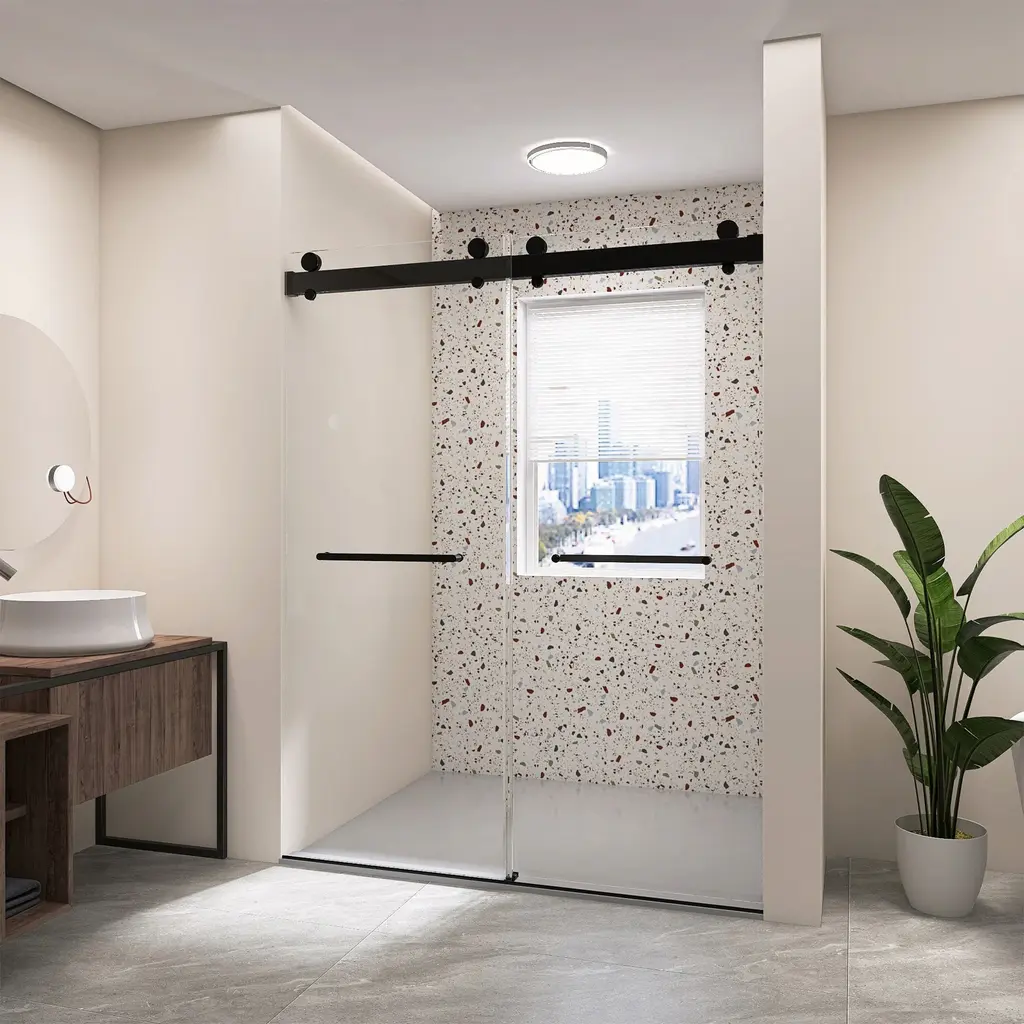 Double Sliding Frameless Shower Door With Clear Glass - 72" X 79" - Matte Black