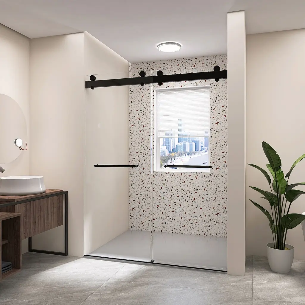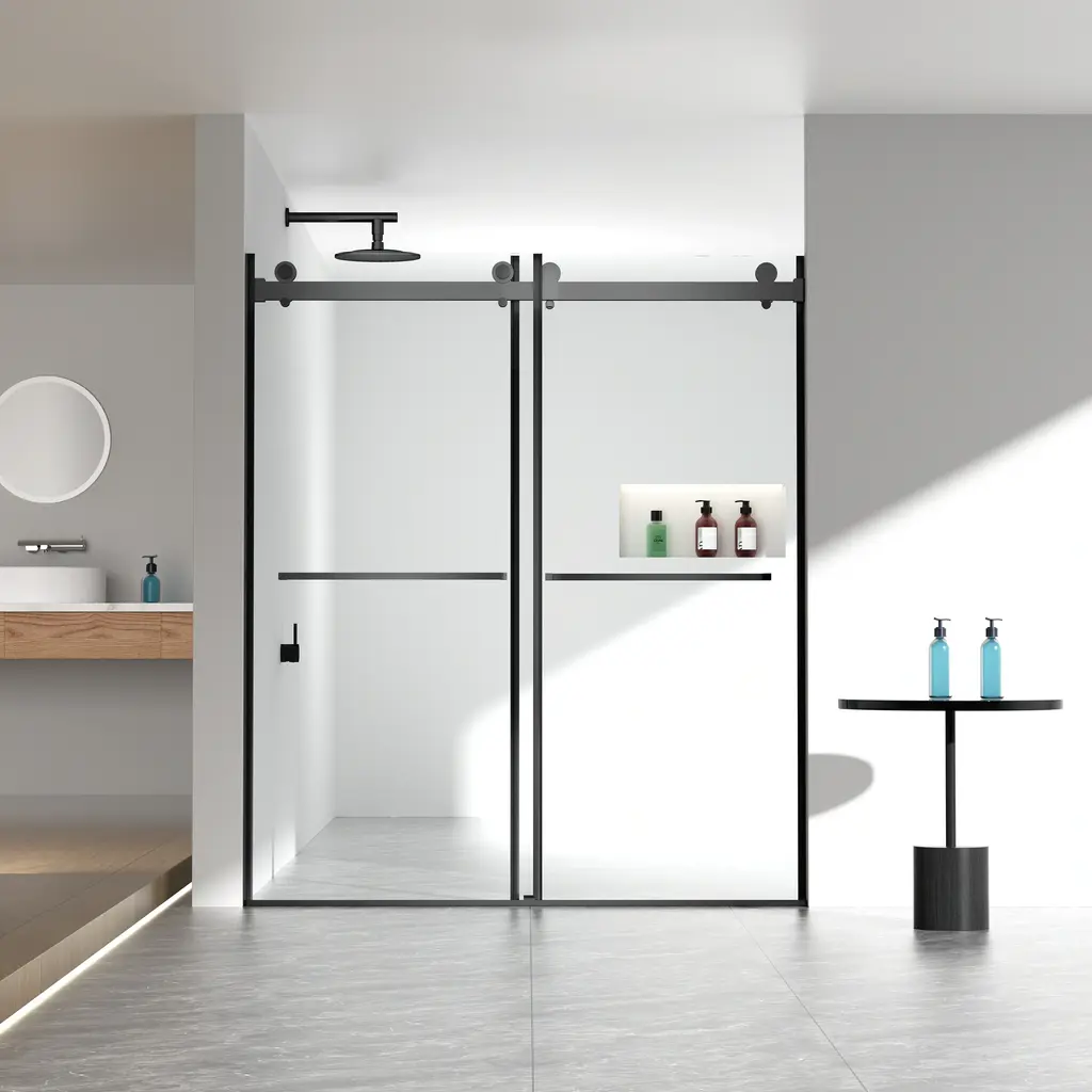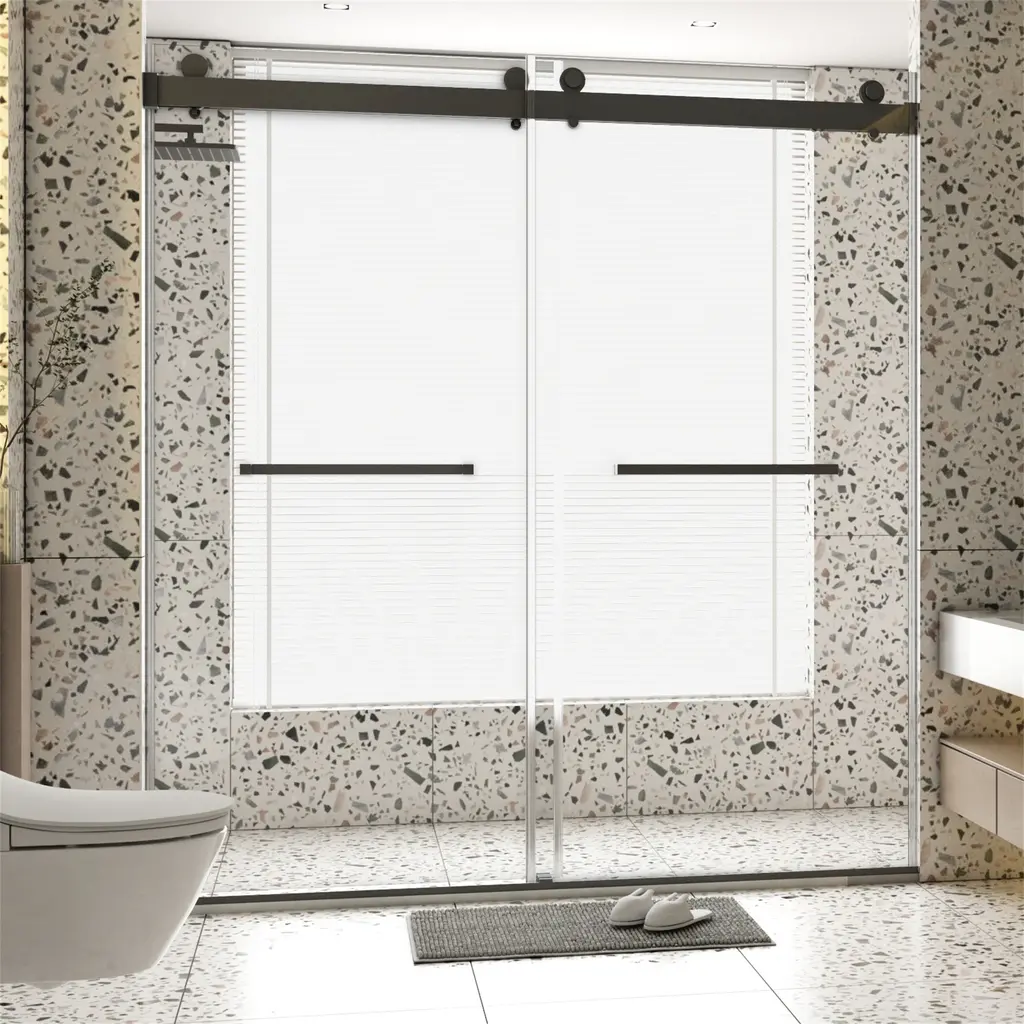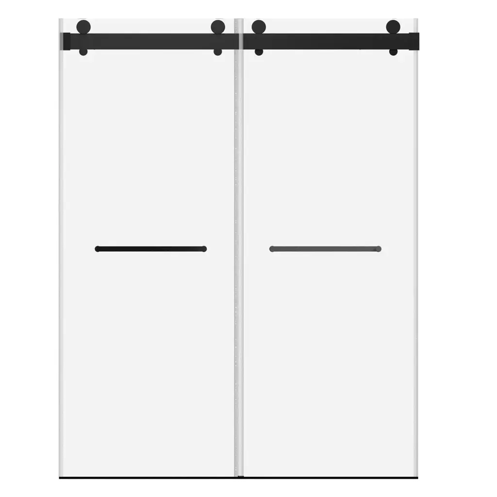 Double Sliding Frameless Shower Door With Clear Glass - 72" X79" - Matte Black