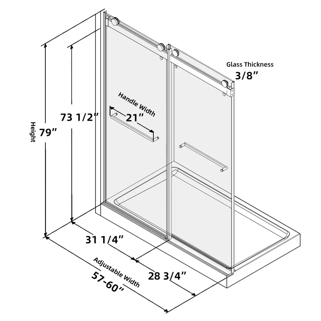 This frameless double sliding shower door create with a patented upgrade crashproof technology and installed on the top of the guide rail. The shower door pass by rigorous test, sliding more than 65,000 times in ease, it can prevent the glass shower door from hitting the wall and causing chipping. Unlike other shower door makes a lot of noise when sliding, this new design shower door with effortless sliding and very low noise, it will not affect the rest of the family. Shower door total height is 79 inch, more higher than any other brand shower doors, this extra high design suitable for any body, specially for taller people, no longer worry about your head will hit the shower door frame and getting hurt. this shower door build in premium quality top guide rail, it's super sturdy and stable. 304 stainless steel large wheel assembly with an anti-jump system creates effortless sliding operation, durable and long-lasting, will not rust, chip, or scratch off. new design wall mount bracket with anti-collision effect, simple design and more safety. The seamless shower doors are designed with all-round sealing anti-leakage strips to prevent water spills, really achieving dry and wet separation environment, helping keep your bathroom clean and tidy.