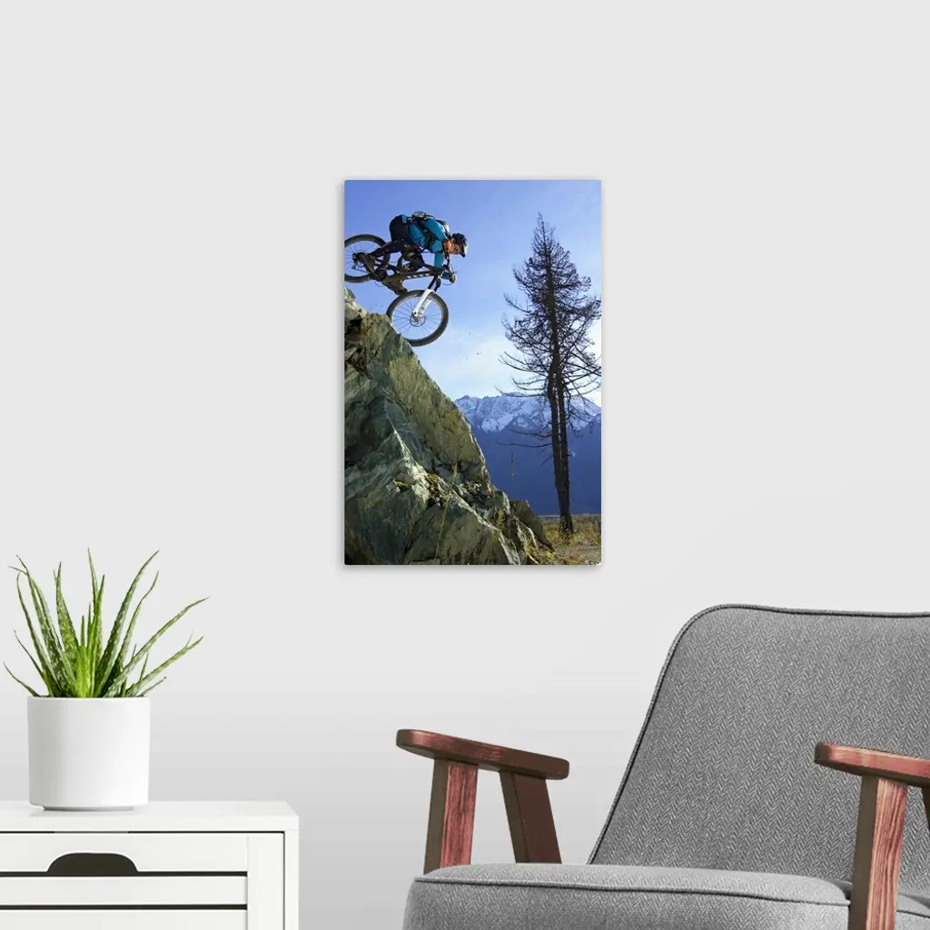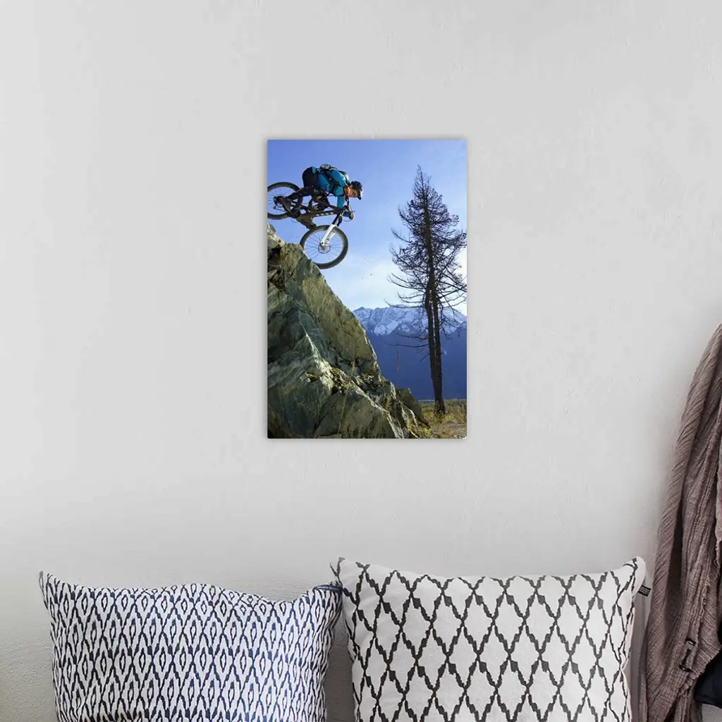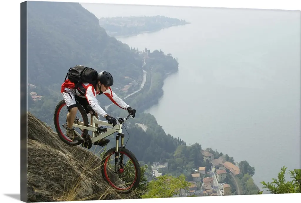 Downhill Cyclist Driving Down A Cliffy Rock