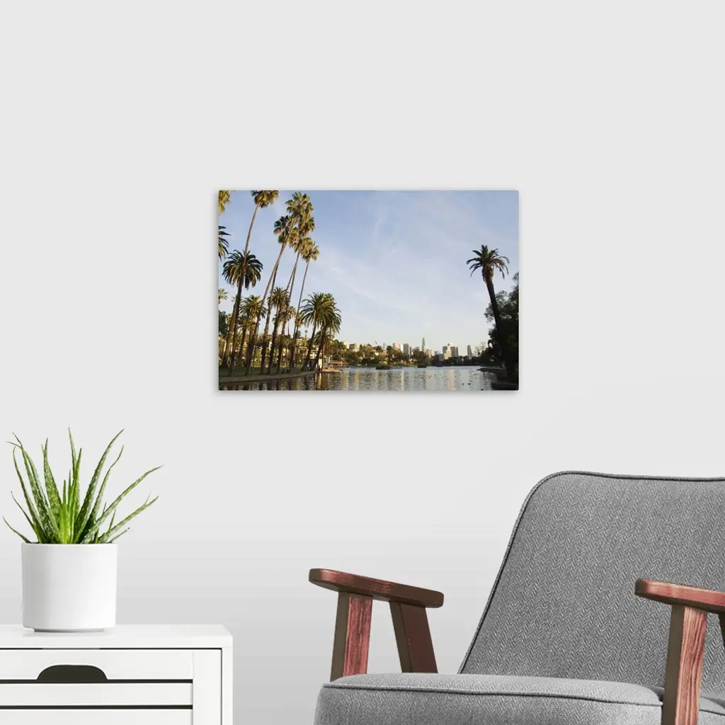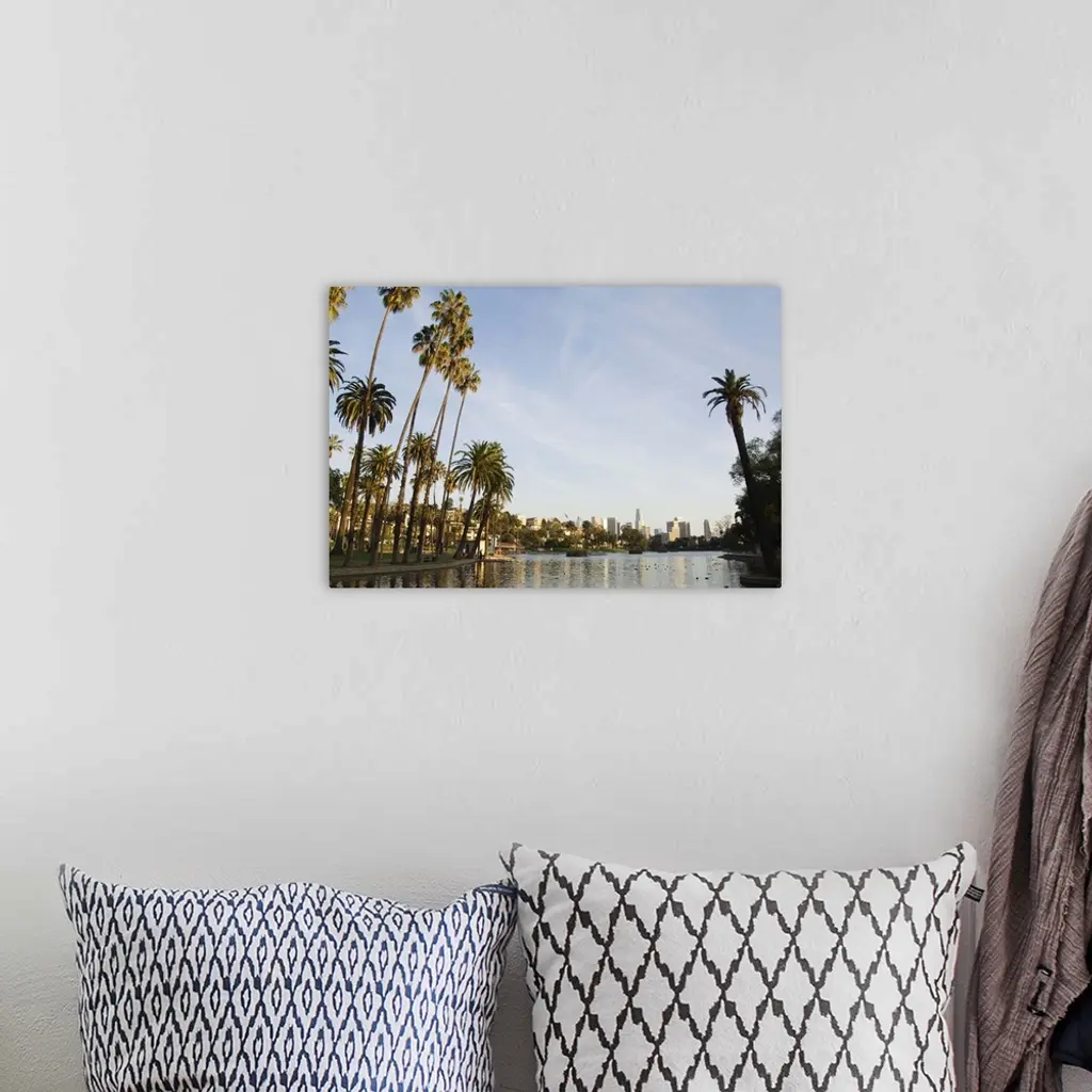 Downtown district skyscrapers located behind Echo Park Lake, Los Angeles, California wall art for home and office decor. Discover canvas art prints, photos, mural, big canvas art and framed wall art in GreatBigCanvas.com's varied collections.
