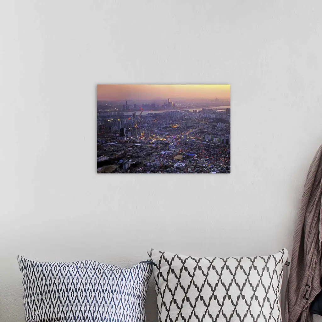 Downtown of Seoul at sunset in South Korea. wall art for home and office decor. Discover canvas art prints, photos, mural, big canvas art and framed wall art in GreatBigCanvas.com's varied collections.
