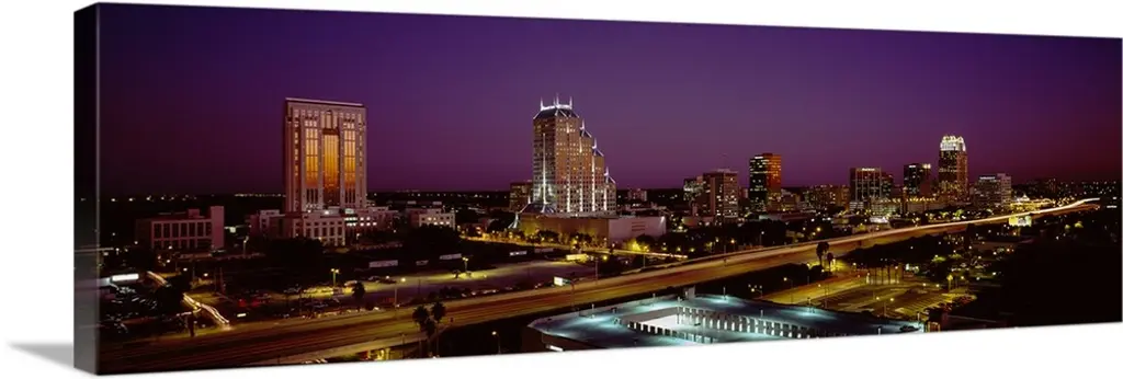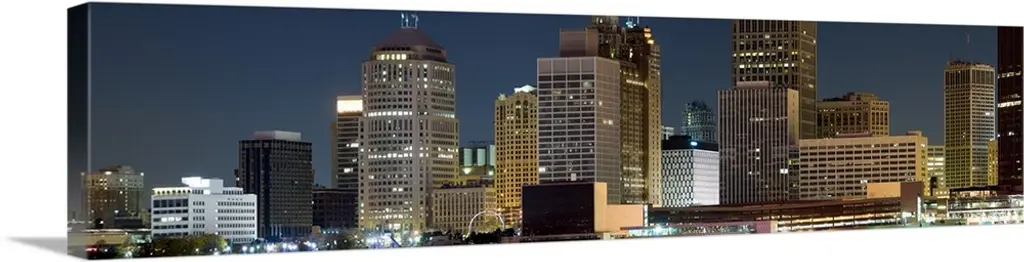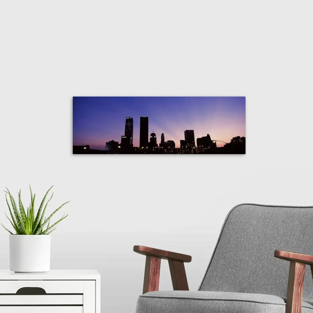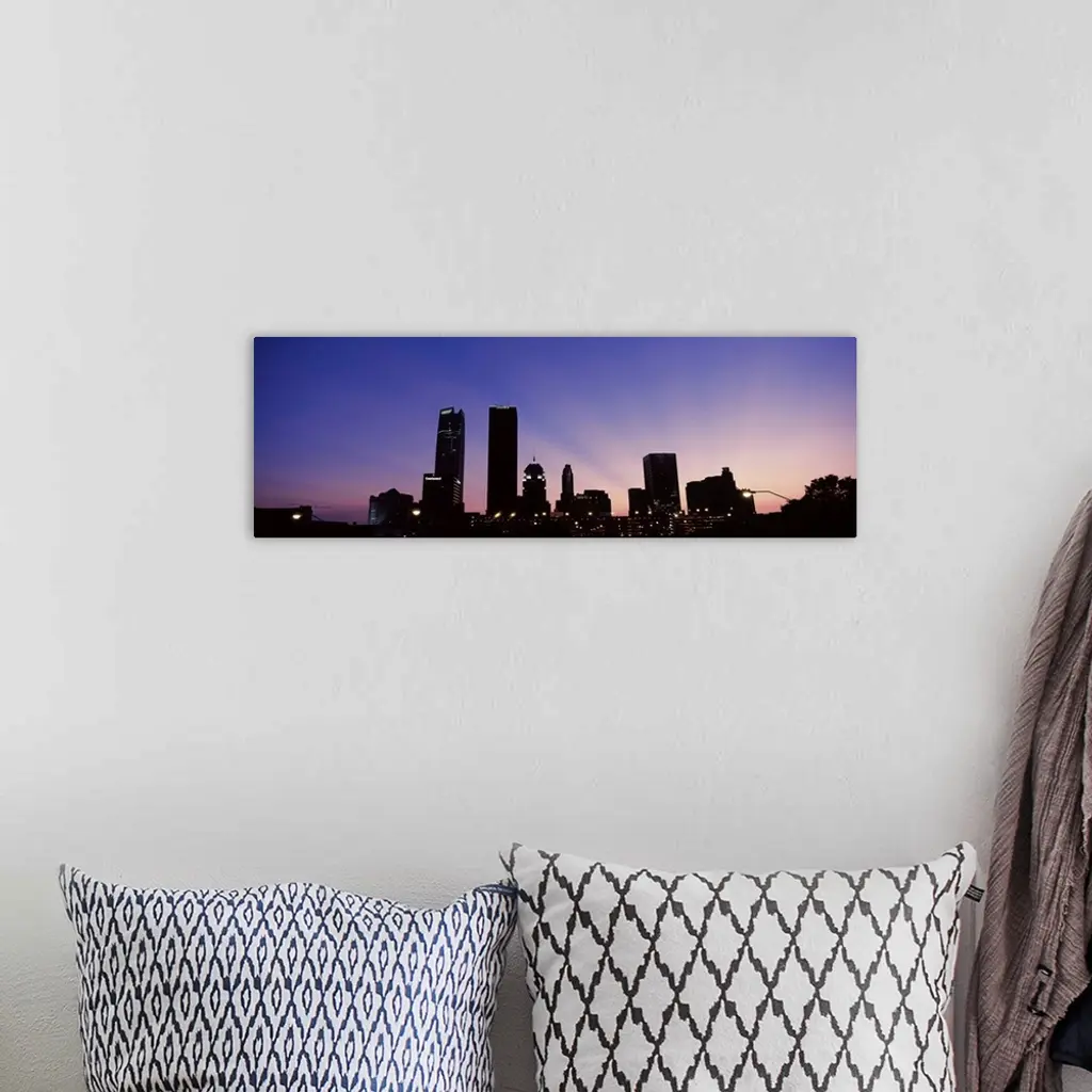 Downtown skyline at night, Oklahoma City, Oklahoma, USA II wall art for home and office decor. Discover canvas art prints, photos, mural, big canvas art and framed wall art in GreatBigCanvas.com's varied collections.