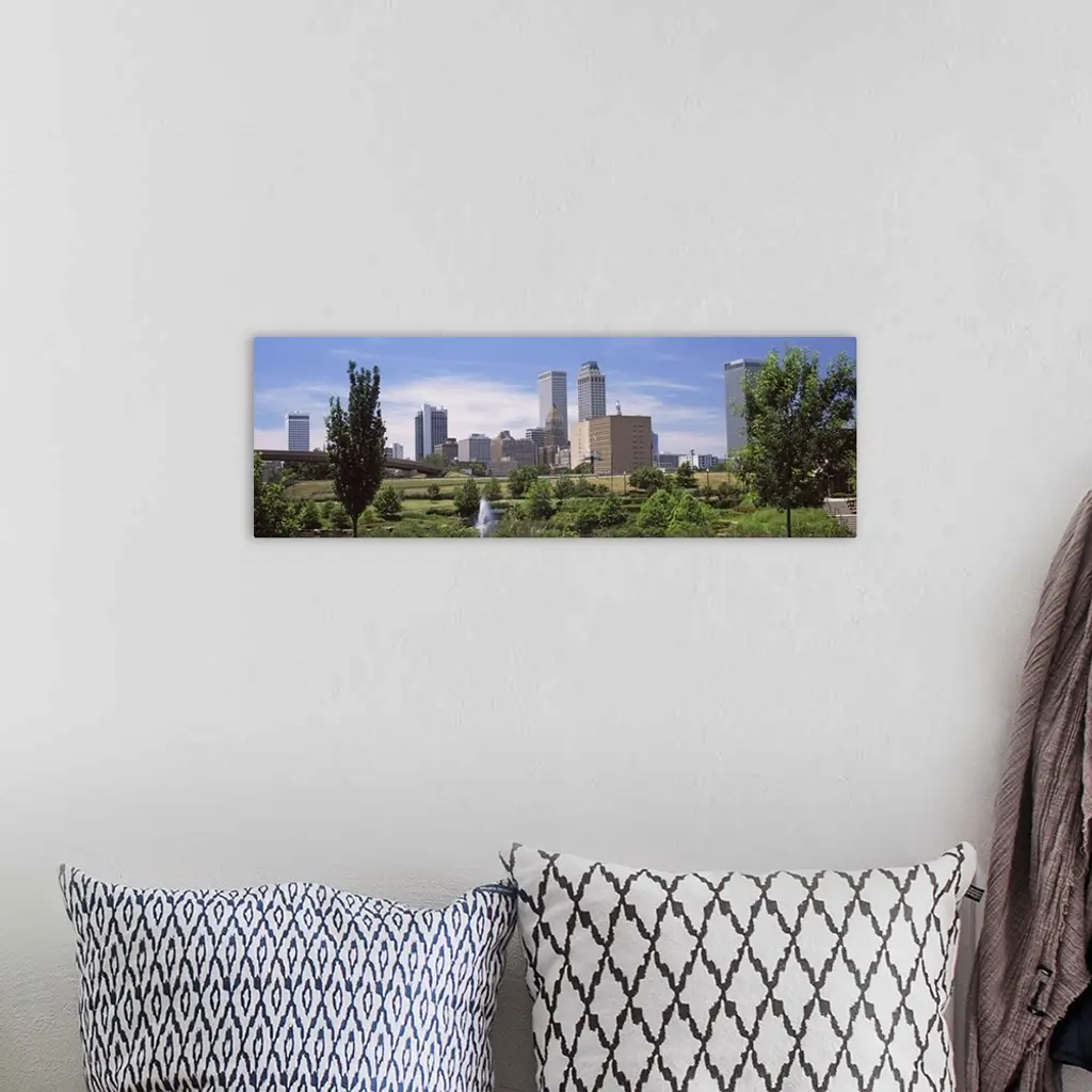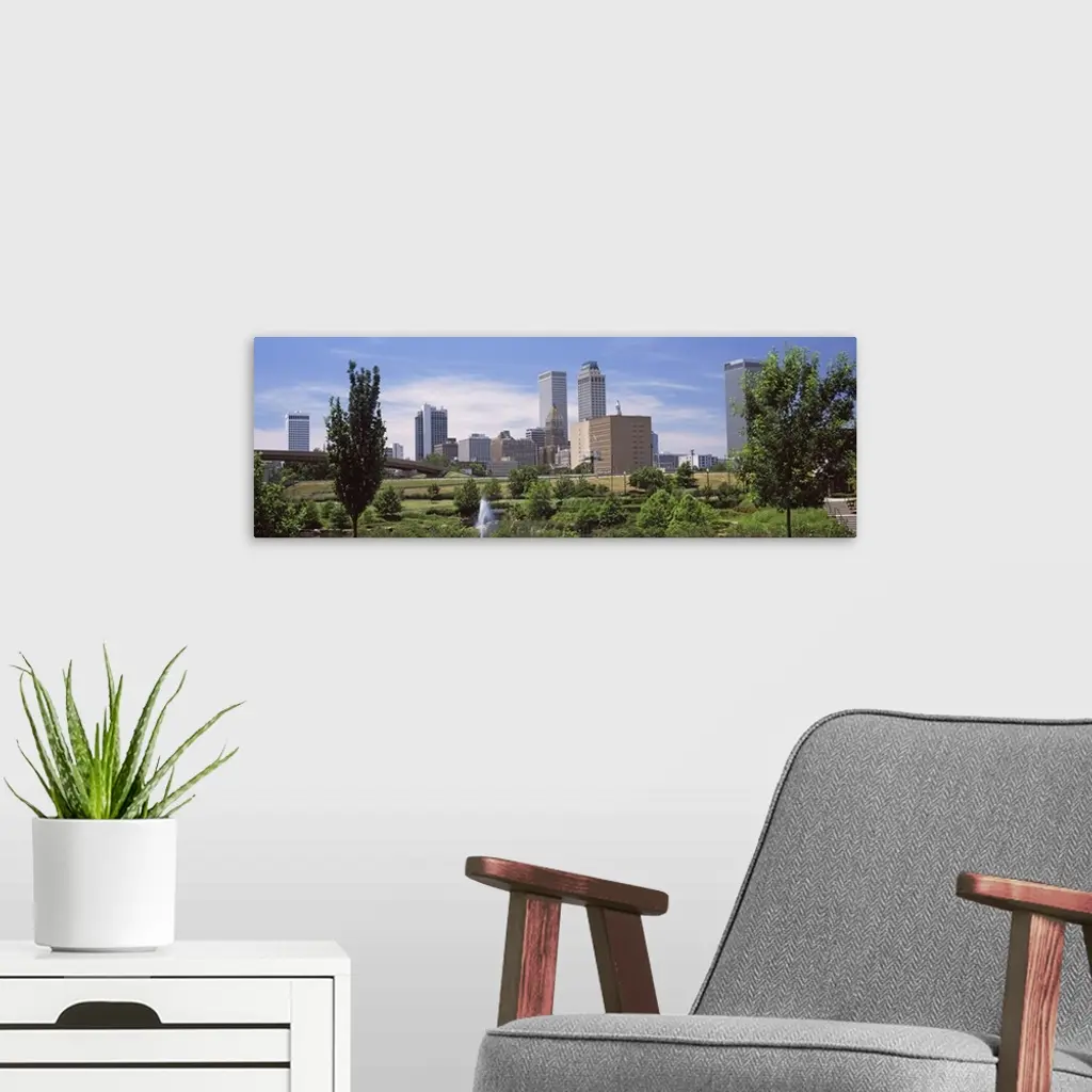 Downtown skyline from Centennial Park, Tulsa, Oklahoma, USA 2012 wall art for home and office decor. Discover canvas art prints, photos, mural, big canvas art and framed wall art in GreatBigCanvas.com's varied collections.