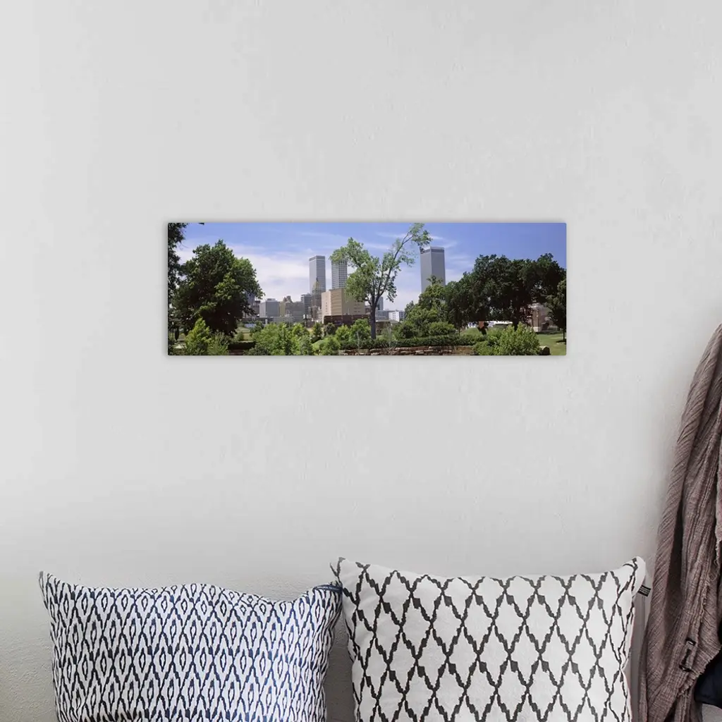 Downtown skyline from Centennial Park, Tulsa, Oklahoma, USA 2012 wall art for home and office decor. Discover canvas art prints, photos, mural, big canvas art and framed wall art in GreatBigCanvas.com's varied collections.