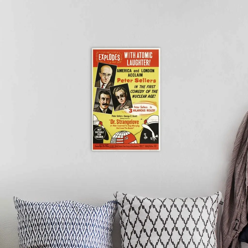 Sellers plays a tour-de-force triple role in Kubrick's classic black anti-war comedy. While a U.S. President (Sellers) deals with the Russian situation, a crazed general (Hayden) implements a plan to drop the A-bomb on the Soviets. Famous for Pickens' wild ride on the bomb, Hayden's character's purity of essence philosophy, Scott's gumchewing militarist, a soft-drink vending machine dispute, and countless other scenes. Based on the novel Red Alert by Peter George.