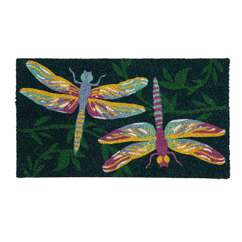 Step into spring style with this coir mat. Perfect for adding an extra charming touch to any entryway, this welcoming design features a stunning dragonfly pattern. Crafted from coco husk fiber, the eye-catching mat is natural and eco-friendly. Ideal for high-traffic areas, the mat traps dirt and debris to prevent messes from being tracked into homes. Designs are printed directly on the mats with fade-resistant dyes. Since the mat is crafted from natural coir, some shedding is to be expected. Shake off excess fibers or use a soft brush to gently sweep.