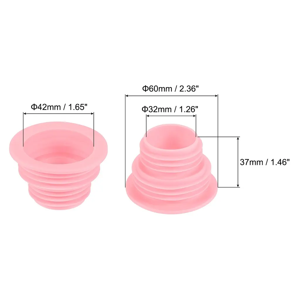 What is this?The drain pipe sealing plugs can prevent odors from overflowing and objects from falling into the drain. Suitable for washing machines, floor drains, sewer pipe joints, and other drains.What will I get?Material: SiliconeOuter Diameter: 39*48*60mm / 1.53*1.89*2.36 inchInner Diameter: 32*42mm / 1.26*1.65 inchHeight: 37mm / 1.46 inchAre there any advantages of the product?Made of durable silicone material, wear-resistant, smooth surface, and easy to clean. With multi-layer threads and flexible design, it can be tightly integrated with the sewer. Helps keep your kitchen and bathroom clean, dry, and comfortable.How to use it?Put the drain pipe into the hole of the sealing ring, and then insert it into the sewer to fit tightly.What should I notice?The drain pipe sealing plug is generally suitable for drain pipes