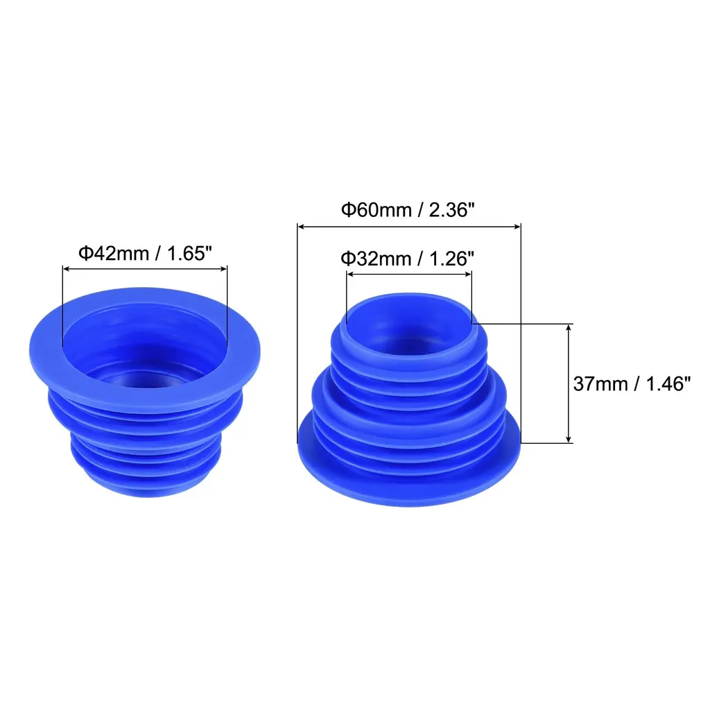 What is this?The drain pipe sealing plugs can prevent odors from overflowing and objects from falling into the drain. Suitable for washing machines, floor drains, sewer pipe joints, and other drains.What will I get?Material: SiliconeOuter Diameter: 39*48*60mm / 1.53*1.89*2.36 inchInner Diameter: 32*42mm / 1.26*1.65 inchHeight: 37mm / 1.46 inchAre there any advantages of the product?Made of durable silicone material, wear-resistant, smooth surface, and easy to clean. With multi-layer threads and flexible design, it can be tightly integrated with the sewer. Helps keep your kitchen and bathroom clean, dry, and comfortable.How to use it?Put the drain pipe into the hole of the sealing ring, and then insert it into the sewer to fit tightly.What should I notice?The drain pipe sealing plug is generally suitable for drain pipes