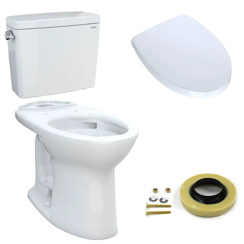 The TOTO® Drake® two-piece elongated 1.28 GPF TORNADO FLUSH® toilet with CEFIONTECT® is a beautifully designed high profile toilet. The Drake features TOTO’s TORNADO FLUSH®, a rimless, hole-free design with dual-nozzles that creates a centrifugal washing action that assists in rinsing the bowl more efficiently. This version of the TOTO Drake includes CEFIONTECT®, a layer of exceptionally smooth glaze that minimizes waste from sticking to the ceramic. CEFIONTECT, coupled with TORNADO FLUSH, assists to reduce the frequency of toilet cleanings, minimizing the usage of water, harsh chemicals, and time required for cleaning. This version of the Drake has a left-hand chrome trip lever and meets the standards for EPA Water Sense®, and California’s CEC and CAL Green requirements. The Drake bowl and tank set includes a tank-to-bowl gasket, tank-to-bowl hardware, toilet bolt caps, wax ring, and toilet seat.