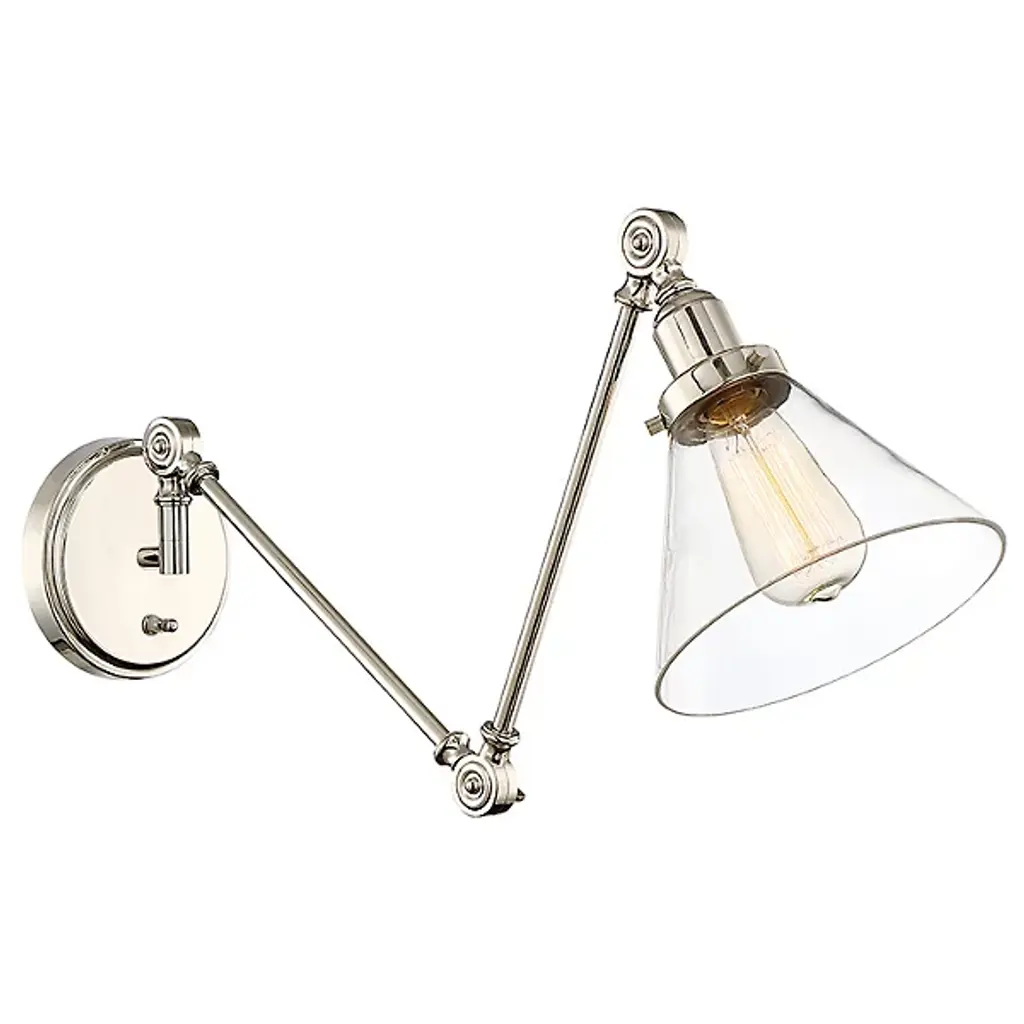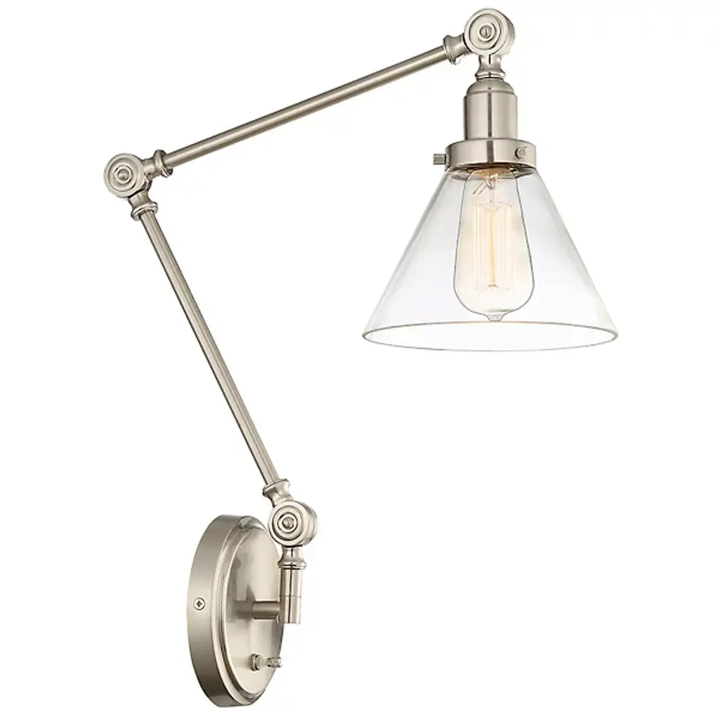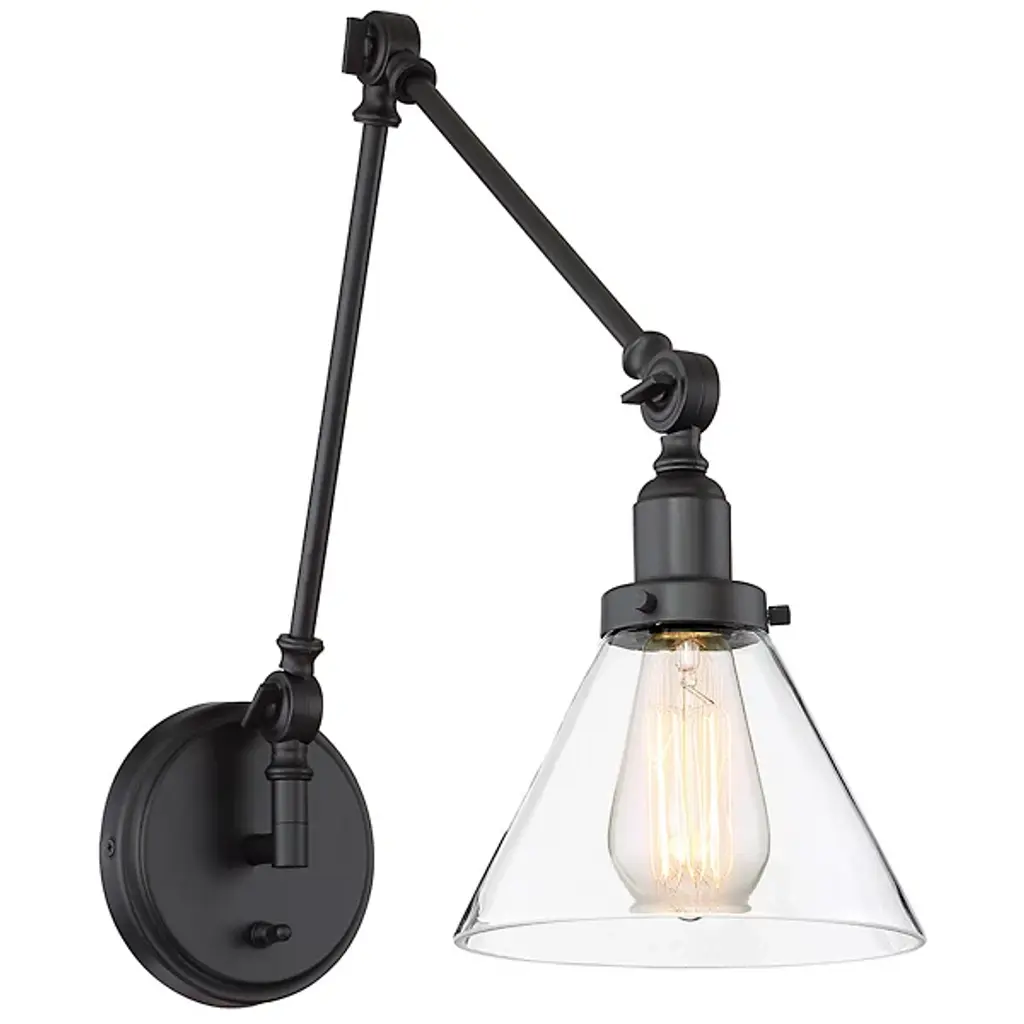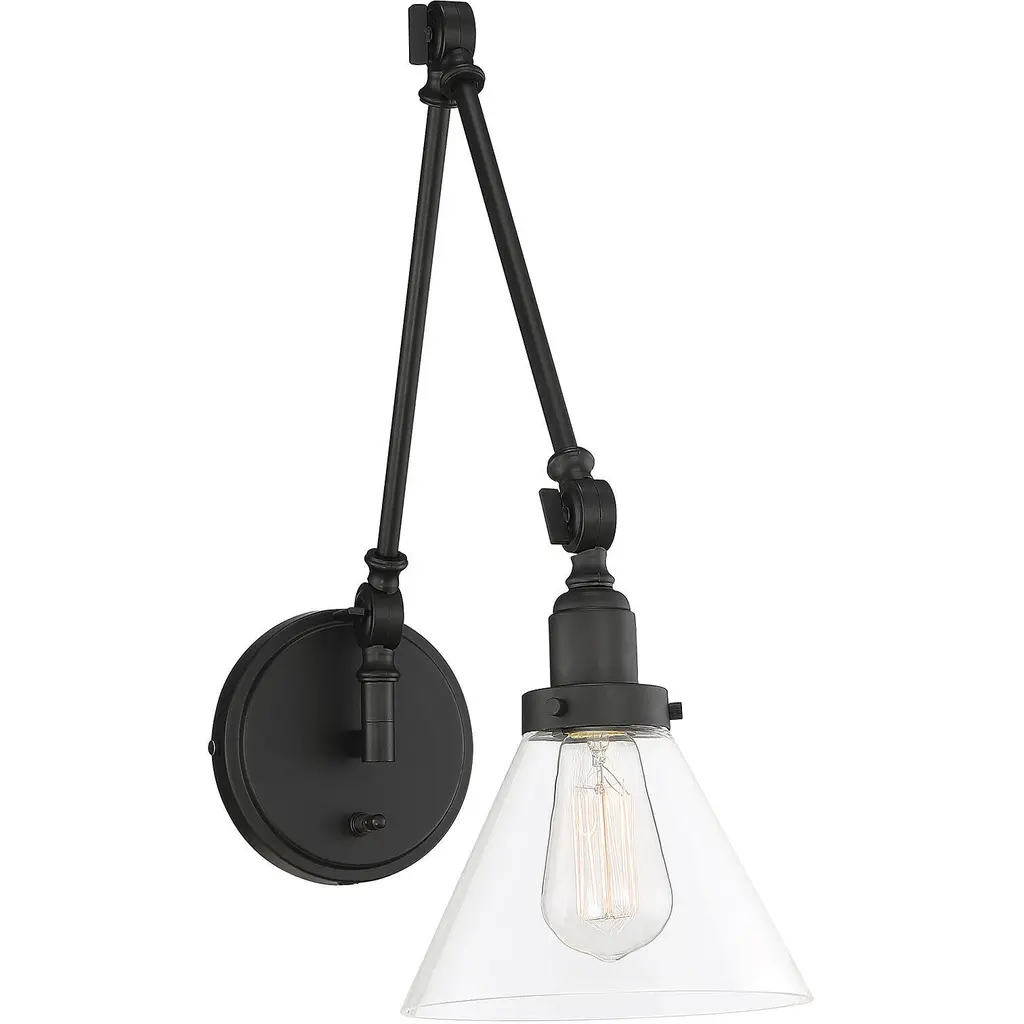 The perfect mix of task and functional lighting, the Savoy House Drake Adjustable Wall Sconce has a simple yet alluring style that can fit a variety of rooms. Adding versatility to its repertoire, this wall sconce can be hard-wired or installed as a plug-in. Switch on wall plate.