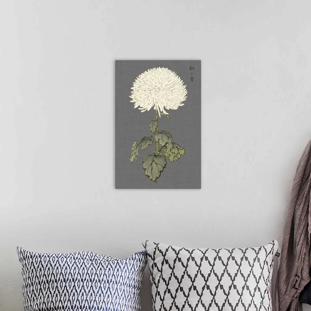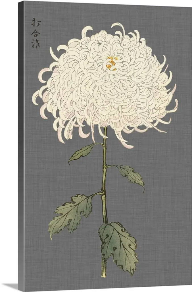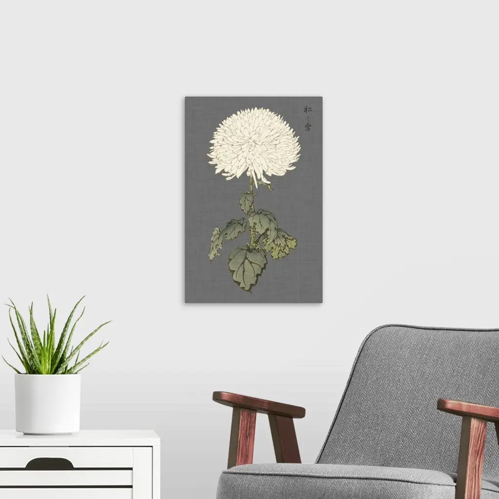 Decorative art with a large ivory mum on a gray textured background.