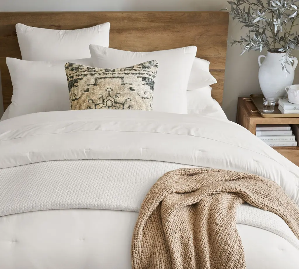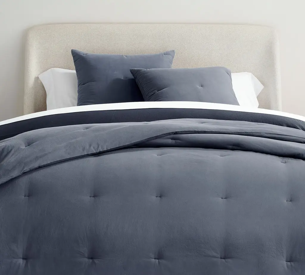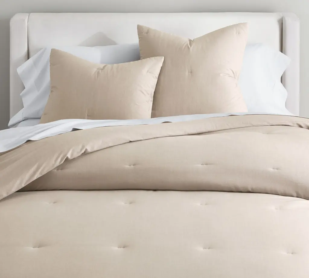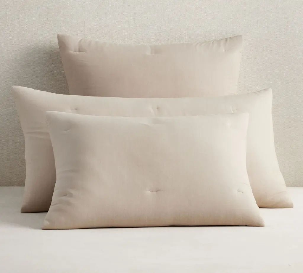 Made with buttery-soft organic brushed cotton and plumped with a cloud-like fill, this bedding is tack stitched for just the right amount of loft. Casually cozy with sink-in softness, it feels as good as it looks. And you can rest easy knowing that each component is made with the environment in mind. Sweet dreams indeed.