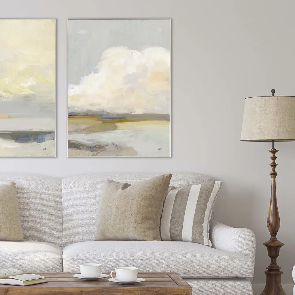 Dream Of Clouds Where Land Meets Sky Blue And Gray And Yellow Framed Art