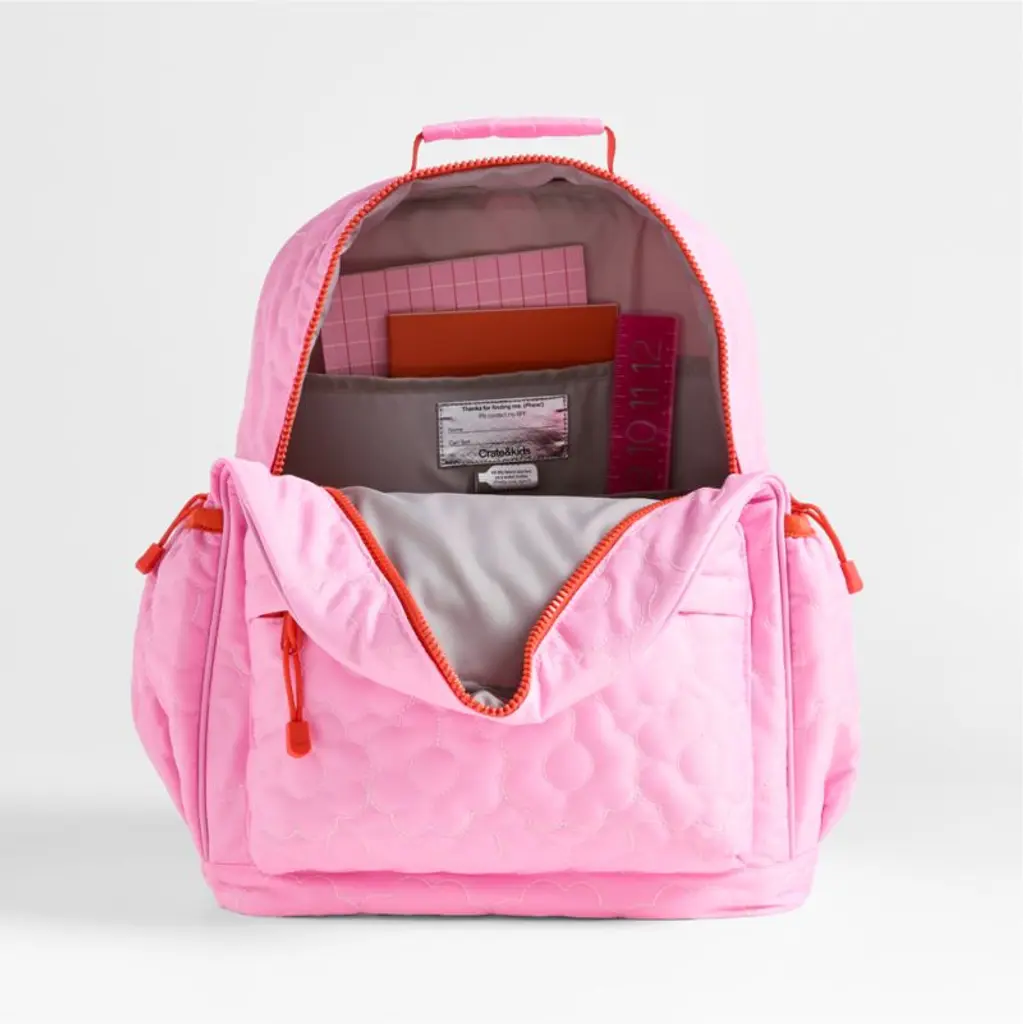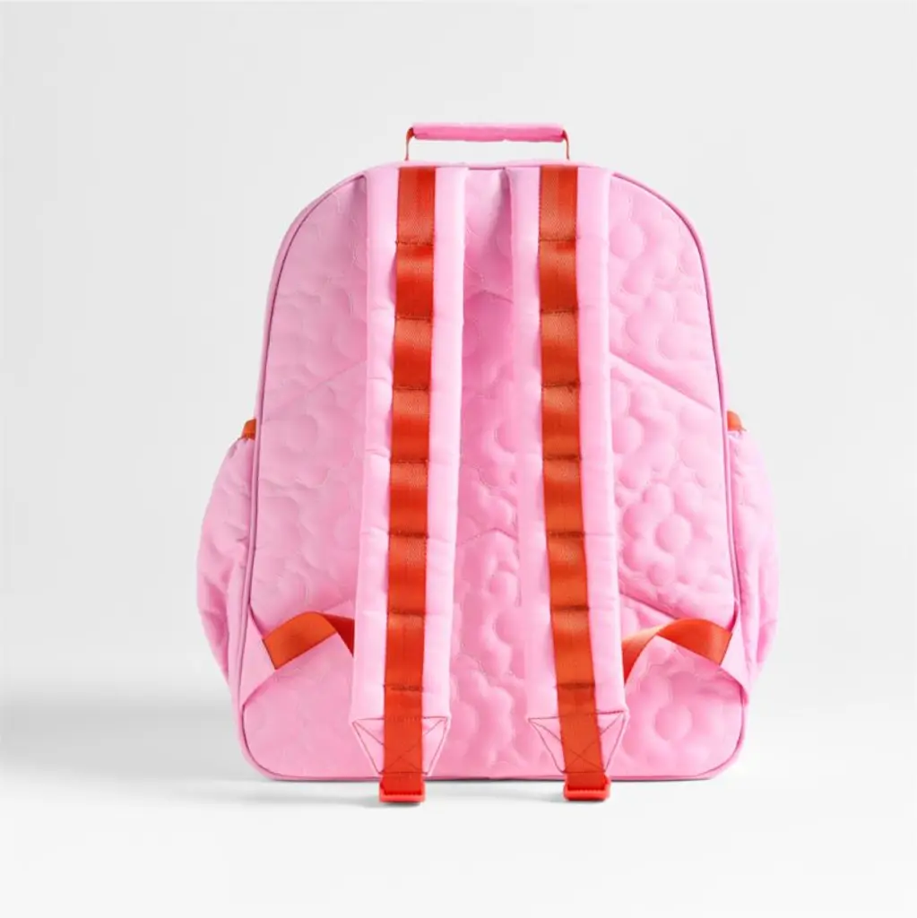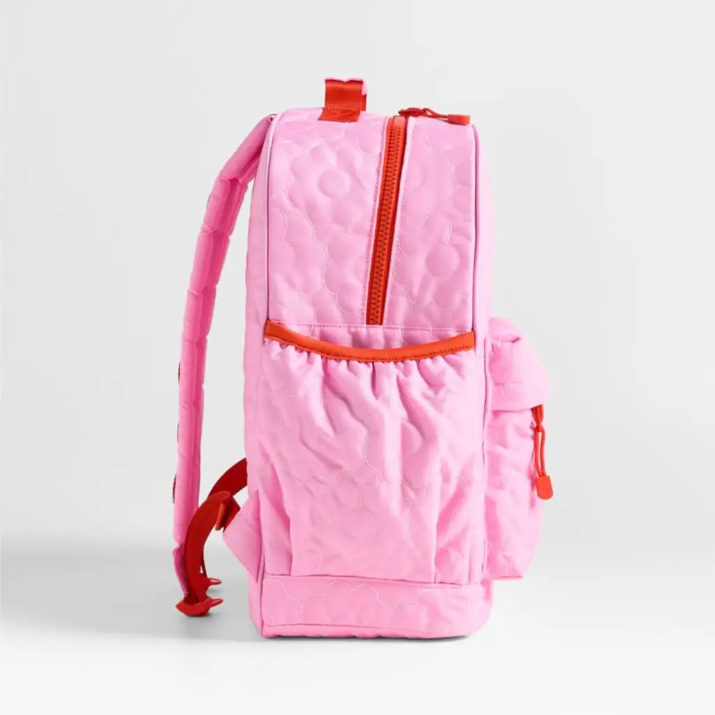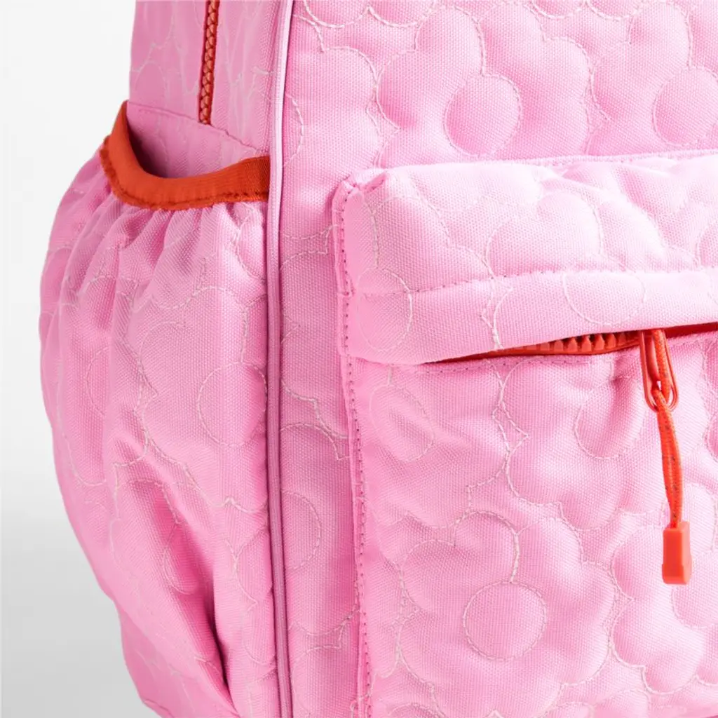 Dreamer Quilted Pink Flower Large Kids Backpack With Side Pockets