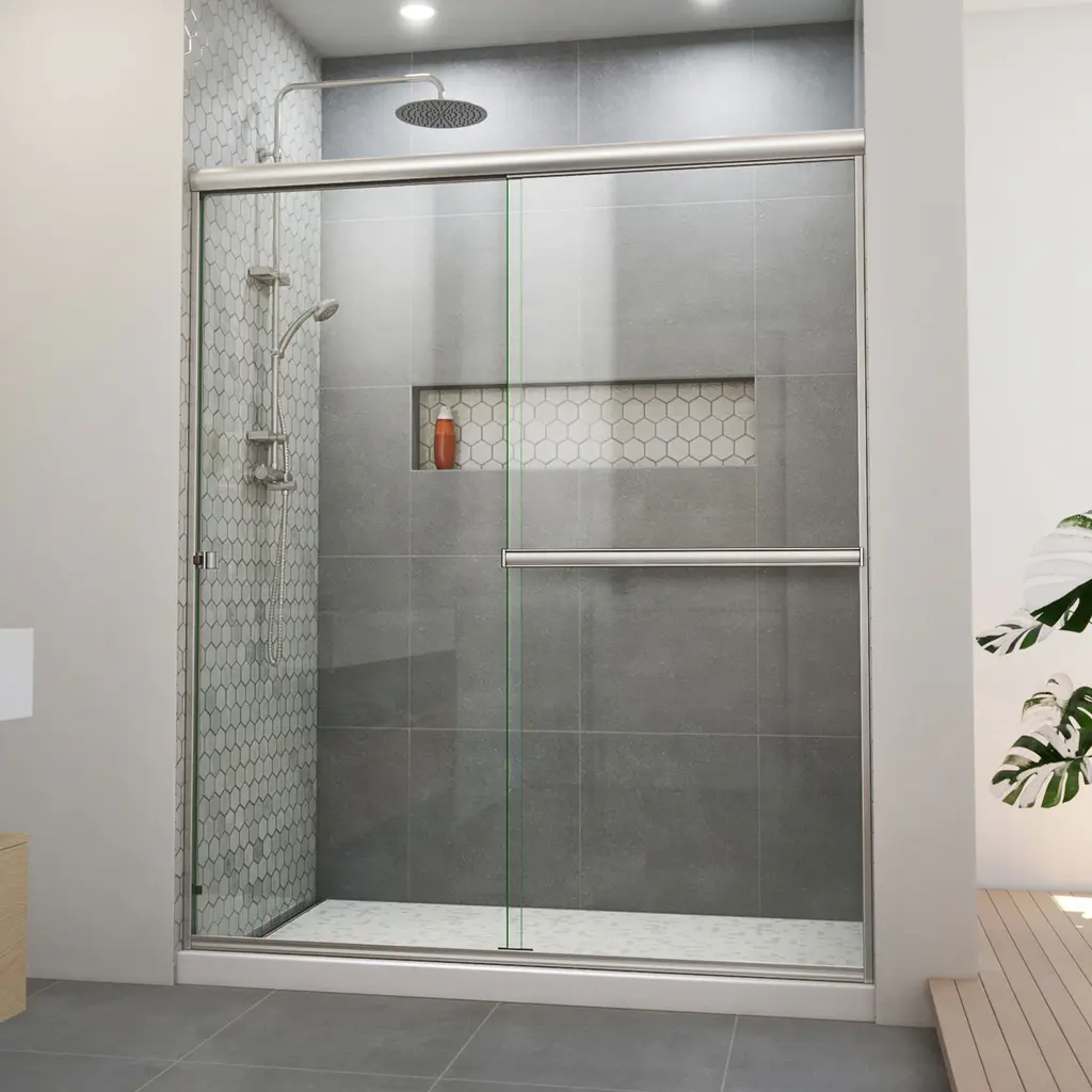 Dreamline Alliance Pro Bg 56-60 In. W X 70 3/8 In. H Semi-Frameless Sliding Shower Door In Brushed Nickel And Clear Glass - Clear
