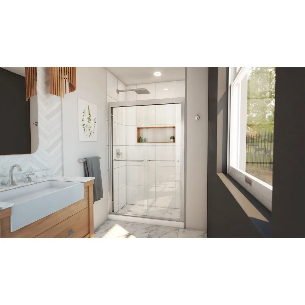 The DreamLine Duet Plus sliding bypass shower or tub door has a sleek, elegant design that will complement both classic and modern bathroom decors. The Duet Plus features semi-frameless glass and smooth gliding rollers for a touch of traditional style, and offers a clean, streamlined appearance. DreamLine has the ultimate solution for your shower project.