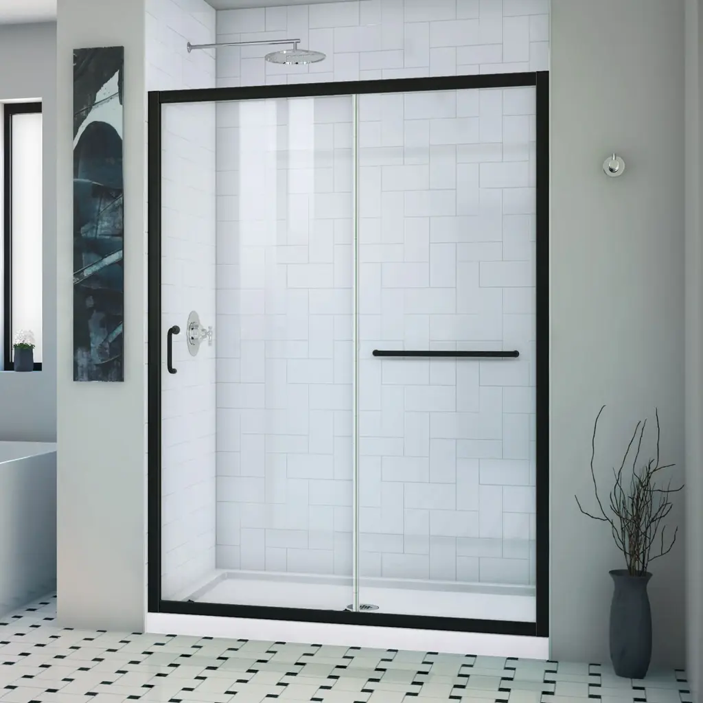 Transform your bathroom into a sophisticated oasis with the DreamLine Infinity-Z sliding shower or tub door. This semi-frameless door blends classic style with modern design to elevate the look of any bathroom. With a variety of finishes and glass options to choose from, you can easily match your existing décor. The Infinity-Z also offers convenience and flexibility, with reversible door opening and adjustable features to fit your specific layout.Features: