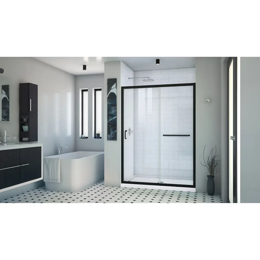 Transform your bathroom into a sophisticated oasis with the DreamLine Infinity-Z sliding shower or tub door. This semi-frameless door blends classic style with modern design to elevate the look of any bathroom. With a variety of finishes and glass options to choose from, you can easily match your existing décor. The Infinity-Z also offers convenience and flexibility, with reversible door opening and adjustable features to fit your specific layout.Features: