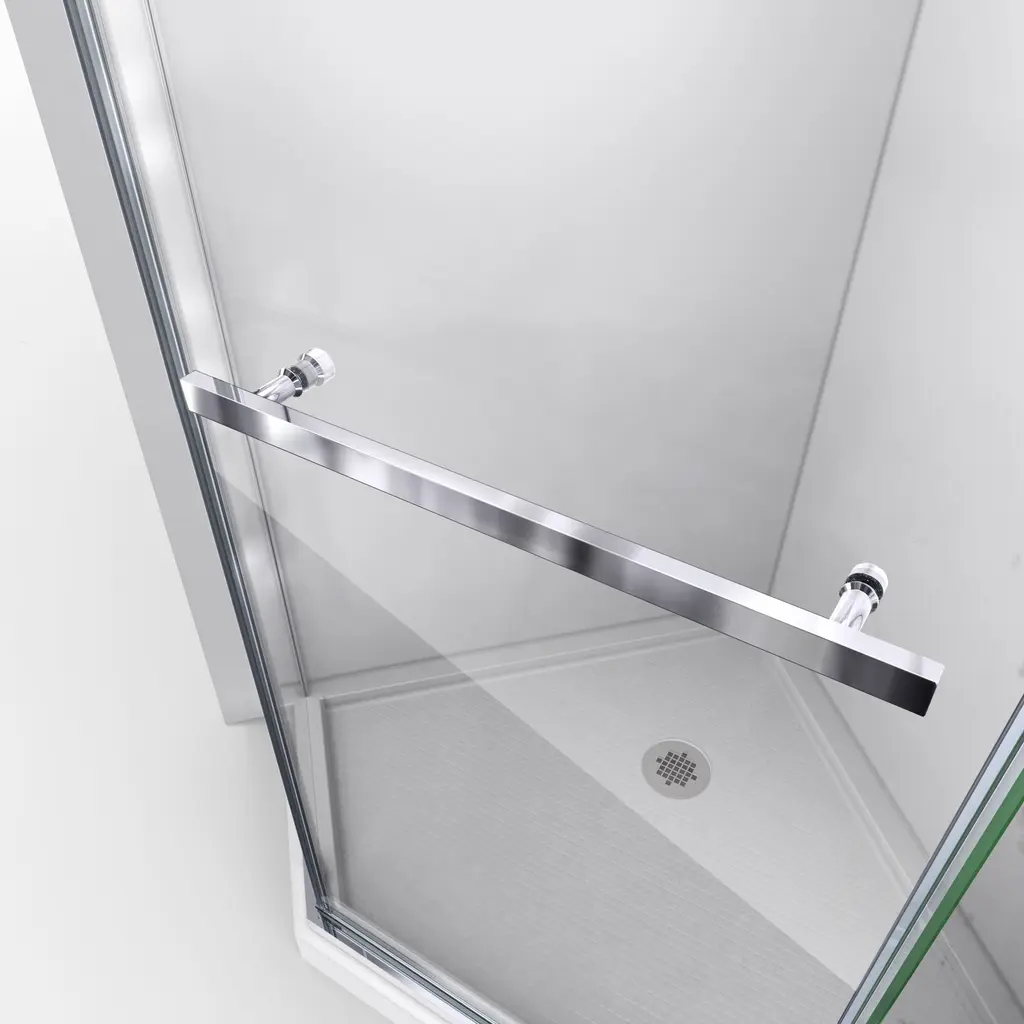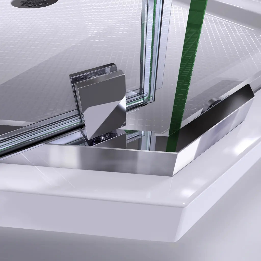 The DreamLine Prism neo-angle shower enclosure features a corner design and a modern shape that is the perfect complement to any bathroom. The Prism maximizes space and creates an open appearance with a frameless glass design and outstanding style. Glass is treated with DreamLine exclusive ClearMax water and stain resistant glass coating for water to bead and roll off, making upkeep a breeze. Stainless steel pivot bars provide durability and stability reinforcement and a full length magnetic door latch creates water tight closure. Features: