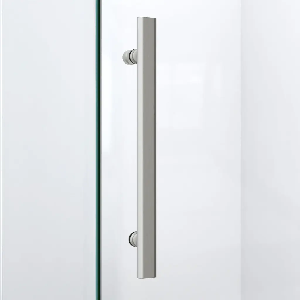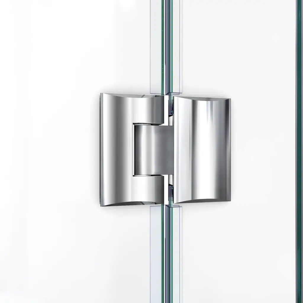 The DreamLine Prism Lux is a fully frameless neo-angle corner shower enclosure with a modern design to transform any shower into a glass oasis. Prism Lux combines style and luxurious design with premium self-closing hinges for convenience and dual support arms for stability. Glass is treated with DreamLine exclusive ClearMax water and stain resistant glass coating for water to bead and roll off, making upkeep a breeze. Maximize your shower space with the minimalist elegance of Prism Lux without the cost of custom glass. Model is reversible for right-hand or left-hand door opening. Features: