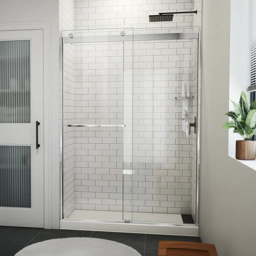 The DreamLine Sapphire-V is a semi-frameless sliding bypass shower or tub door with a modern, elegant design and a striking look. The Sapphire-V features thick tempered glass, a convenient towel bar on one panel and sleek rollers for smooth gliding action. Integrated vinyl stoppers offer glass safety and operational security for the Sapphire-V. DreamLine exclusive ClearMax water and stain resistant glass coating provides superior protection from buildup and easy maintenance. Turn your shower space into a gem with the Sapphire-V shower door!