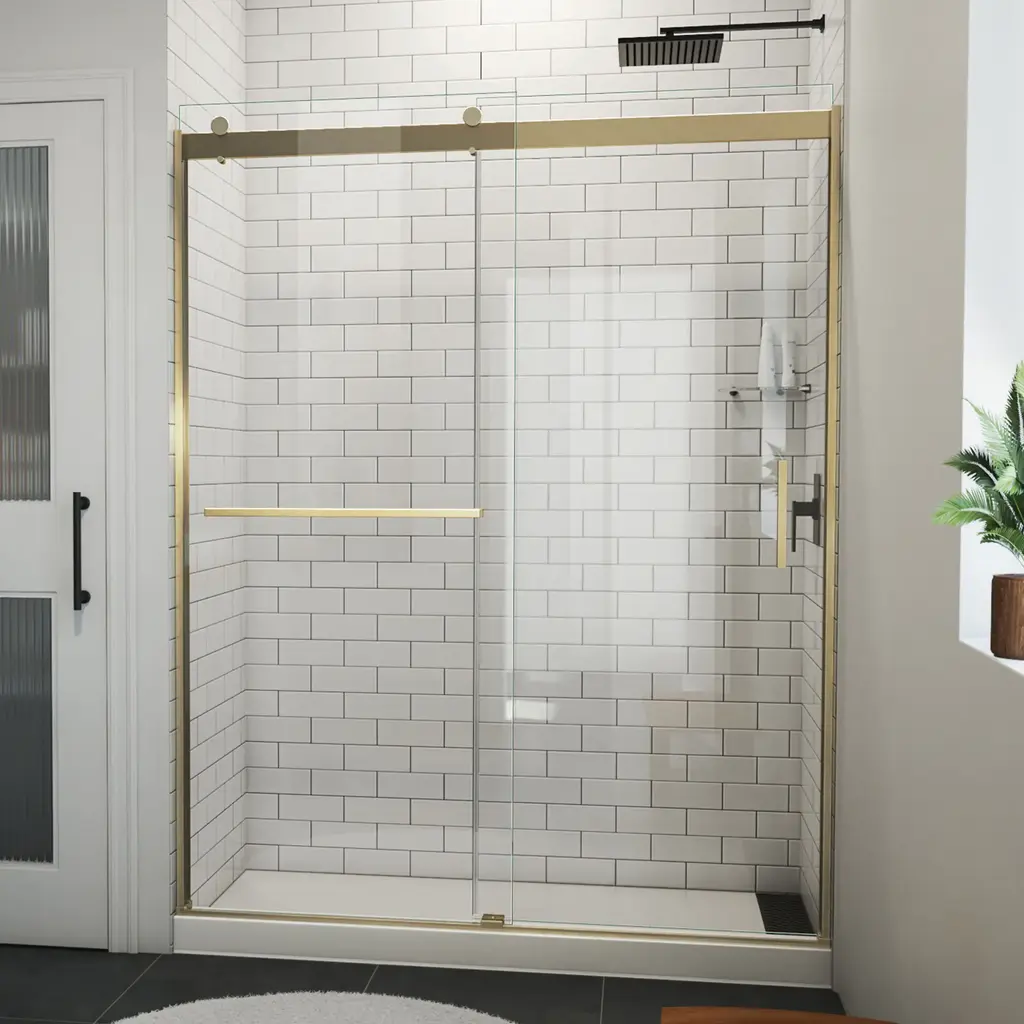 Dreamline Sapphire-V 56 - 60 In. W X 76 In. H Bypass Shower Door In Brushed Gold And Clear Glass - Clear