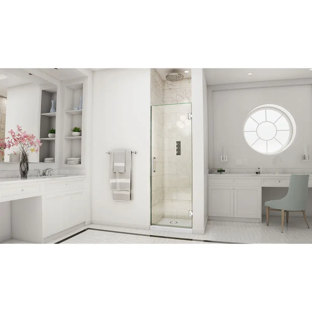 The DreamLine Unidoor is a frameless swing shower door designed in step with modern market trends. The elegant design and an incredible range of sizes are combined in the Unidoor for the look of custom glass at an unparalleled value. DreamLine exclusive ClearMax water repellant and stain resistant glass coating adds superior protection from stains and is nearly maintenance-free. With clean lines, modern accents and an upscale look, the Unidoor collection adds timeless style to any bathroom space. Features: