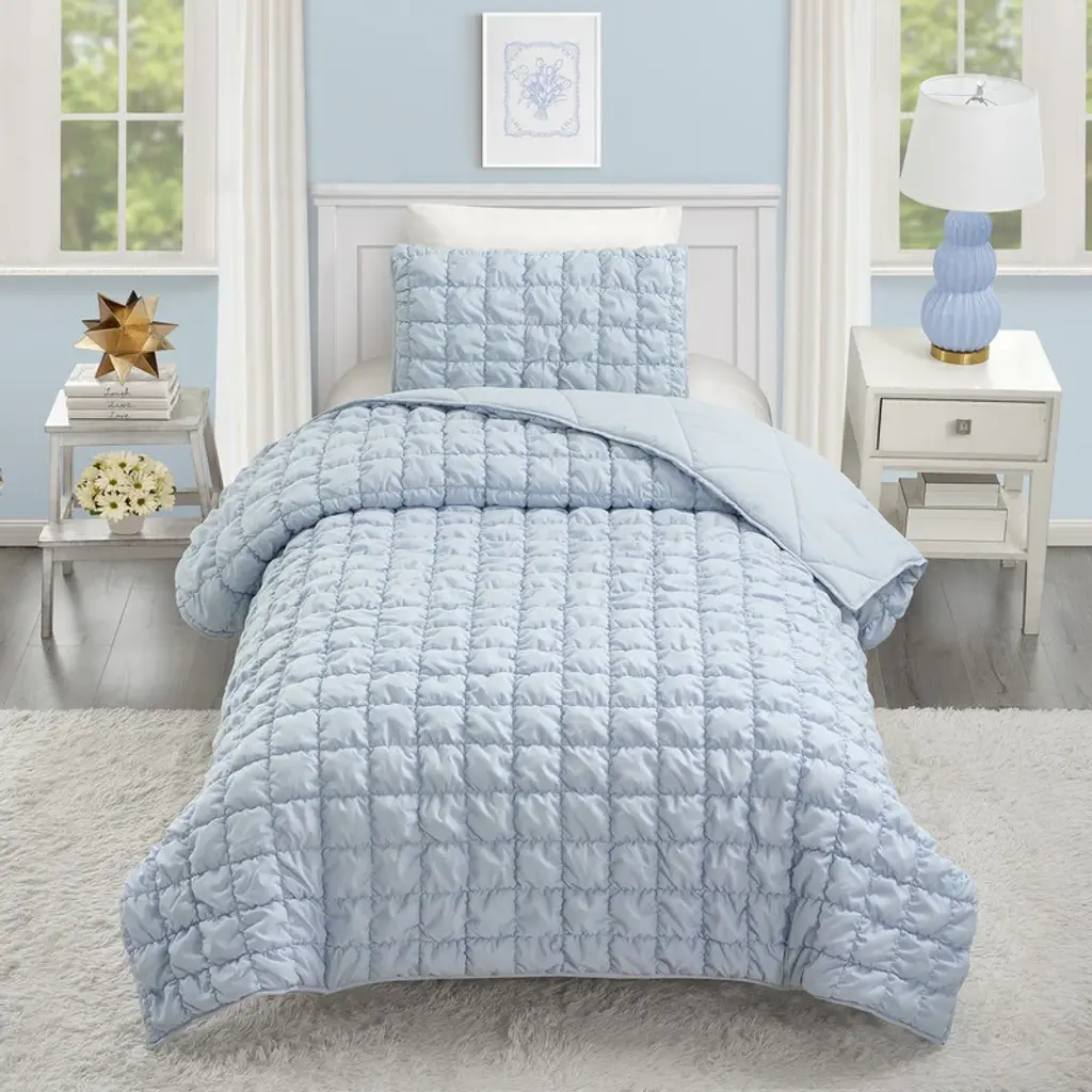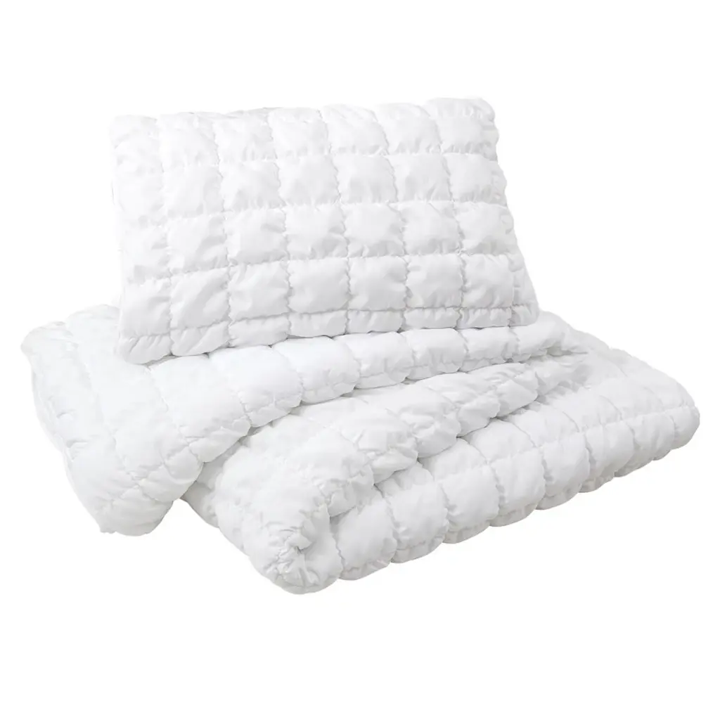 Dreamy Clouds Puffy Marshmallow Quilt Set - White - Twin - Twin Xl