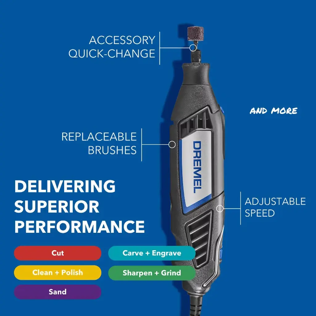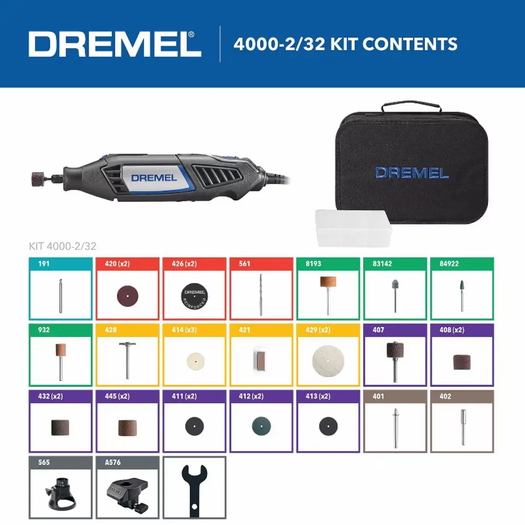 The Dremel 4000 with interchangeable accessories and attachments will give you just that. The tool has a 360 degree soft grip for greater maneuverability and comfort in any position. Tackle even the smallest and most detailed tasks in awkward and tight sp