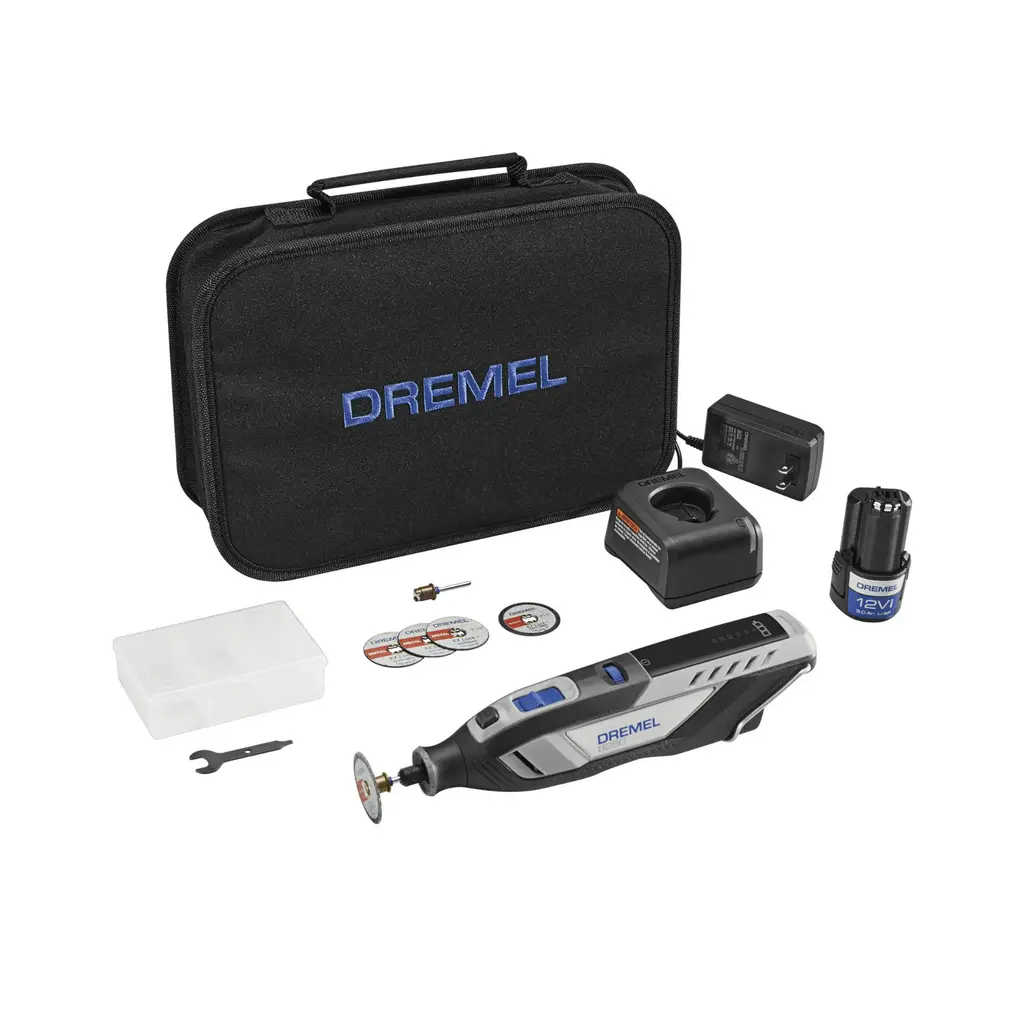From cutting, sanding, and grinding to drilling, the Dremel 8250 Cordless Brushless Rotary Tool delivers corded performance without the inconvenience of a cord. Featuring an advanced brushless motor, this cordless brushless rotary tool provides optimized motor efficiency, more runtime and power, and a long tool life.With 20 percent more power than Dremel's most powerful corded tool, the 4300, this product provides maximum versatility to perform the widest range of applications and is compatible with all rotary tool accessories and attachments.The powerful 12 Volt/3 AMP Lithium-Ion battery provides superior performance and runtime at all speeds, delivering 100 percent more runtime than the 4300, ensuring that the 8250 will still be going strong when you need it. It provides exceptional portable power and longer runtimes.The innovative tool design is engineered to exceed endurance tests for consistent and powerful performance every time, while the ergonomic body provides a comfortable grip zone, making it ideal for extended use. Its textured soft rubber grip enables easier handling and better control, allowing continuous performance for extensive working sessions. The 8250 gives you the confidence and performance to tackle the toughest of jobs.Bundle Includes: