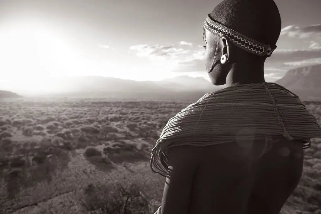 This work is part of Drew Doggett’s "Desert Song: Compositions of Kenya" series, which presents the women and children of the resilient Rendille and Samburu tribes in portraiture that pays homage to modern and contemporary fashion photography. Dressed in the traditional clothing native to this desert territory, the visual language of this series blurs geographic and cultural lines and reveals a people exuding an enviable harmony with their land. From a limited edition of 75, this work is printed on Hahnemühle FineArt Baryta paper, which sets the standard for image definition and color depth. Each print includes an embossed certificate of authenticity and is signed and numbered.