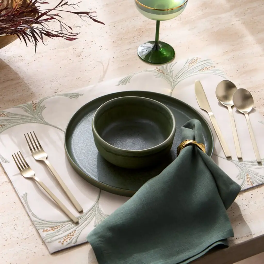 Expert craftsmanship leaves its mark on the Drift Dinner Plate. Hand-pressed with a lipped edge, round stoneware form is coated with a matte green water-reactive glaze that behaves beautifully when kiln-fired. What surfaces is a subtle crackled texture in a rich tonal mix that makes each piece unique. Part of the Drift Reactive Green Dinnerware collection; also looks great with Drift Dinnerware in both lavender and ivory. CB2 exclusive.