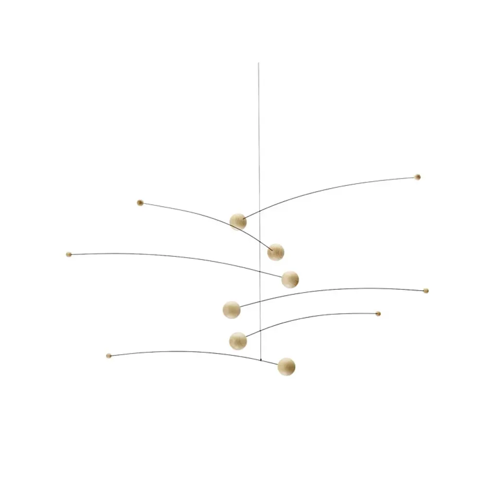 Flensted’s Drifting Clouds mobile is made of slender, gilded steel and thin wood chips, which gently flow in the air like clouds on a beautiful day. Handmade in Denmark, the Flensted mobiles are unique and stylish elements in home décor and public spaces. While floating in the air, the mobile catches the eye and envokes interest and creativity in both children and adults. Every Flendsted mobile is designed to constantly move with the air currents in a calm, balanced manner.