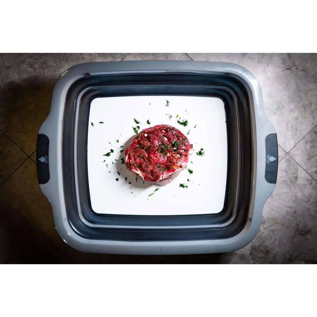 Our Jr size BBQ Prep Tub makes prep, marinating, and cleanup easy. Fits in the fridge more easily and great for leftovers. (also available in orange). Collapsible design includes a built-in cutting board. It's a game changer.