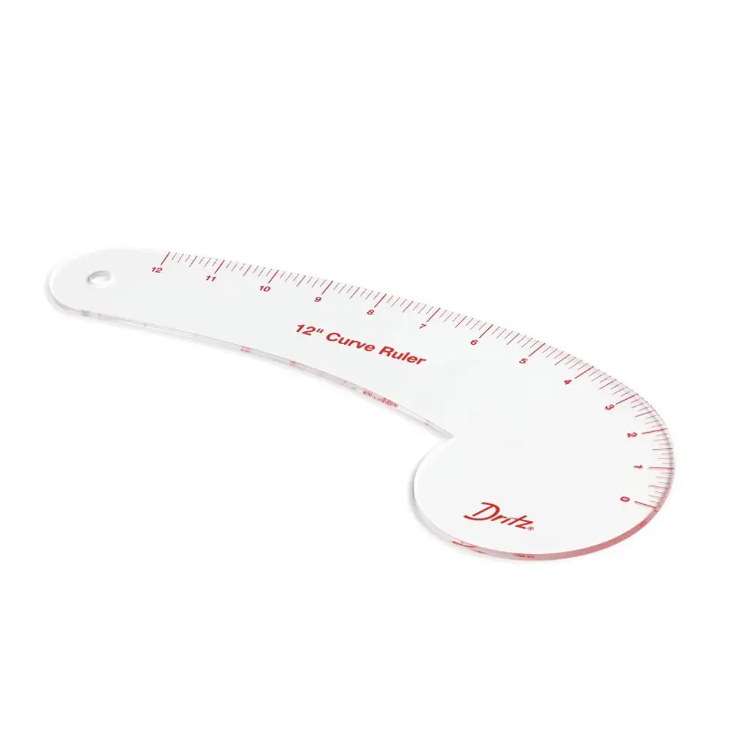 The 12" Curve ruler has a strong tight curve designed to help draw a smooth line for pattern drafting, altering flat patterns and alterations. This Curve Ruler is ideal for necklines, armholes, sleeve caps, collars and crotch curves.