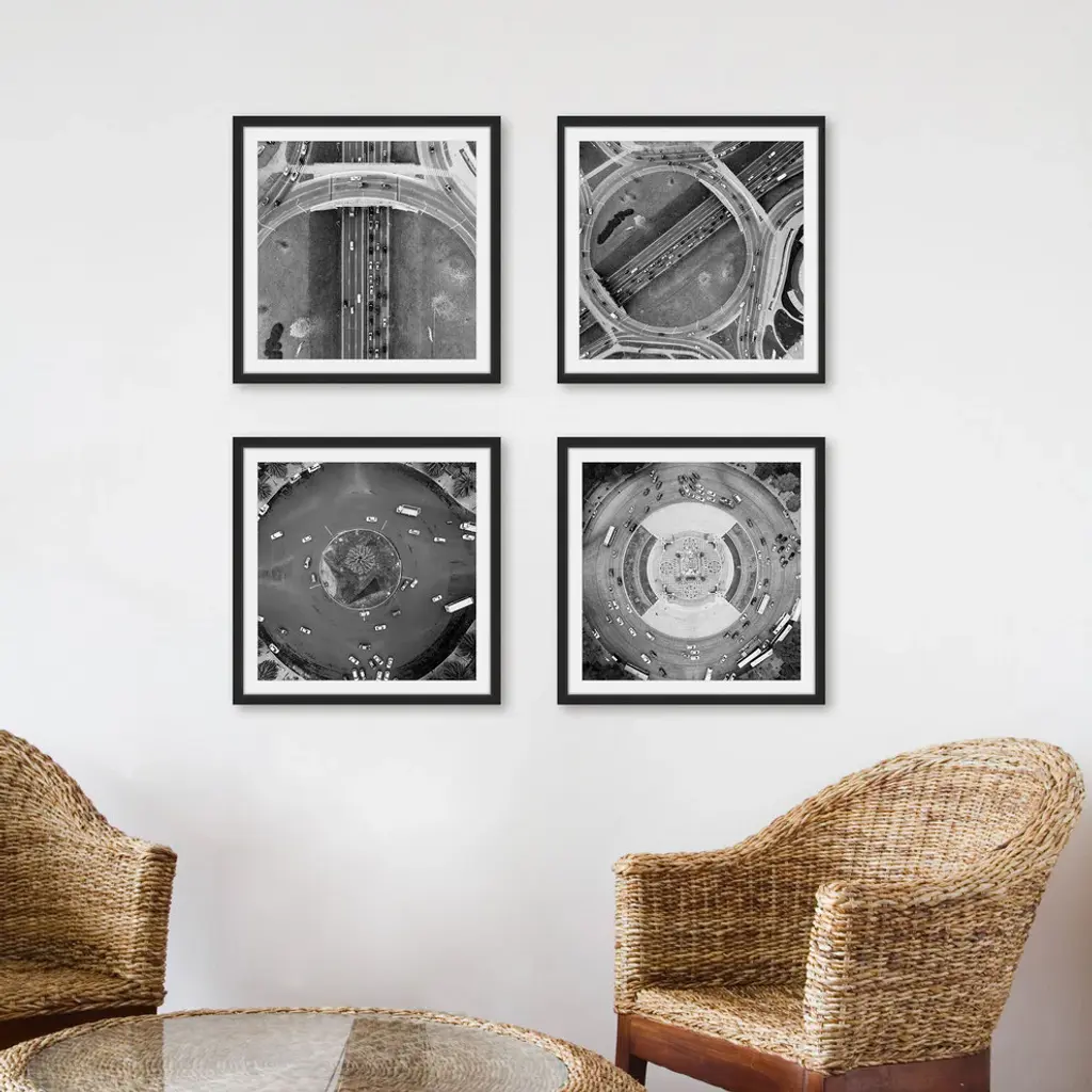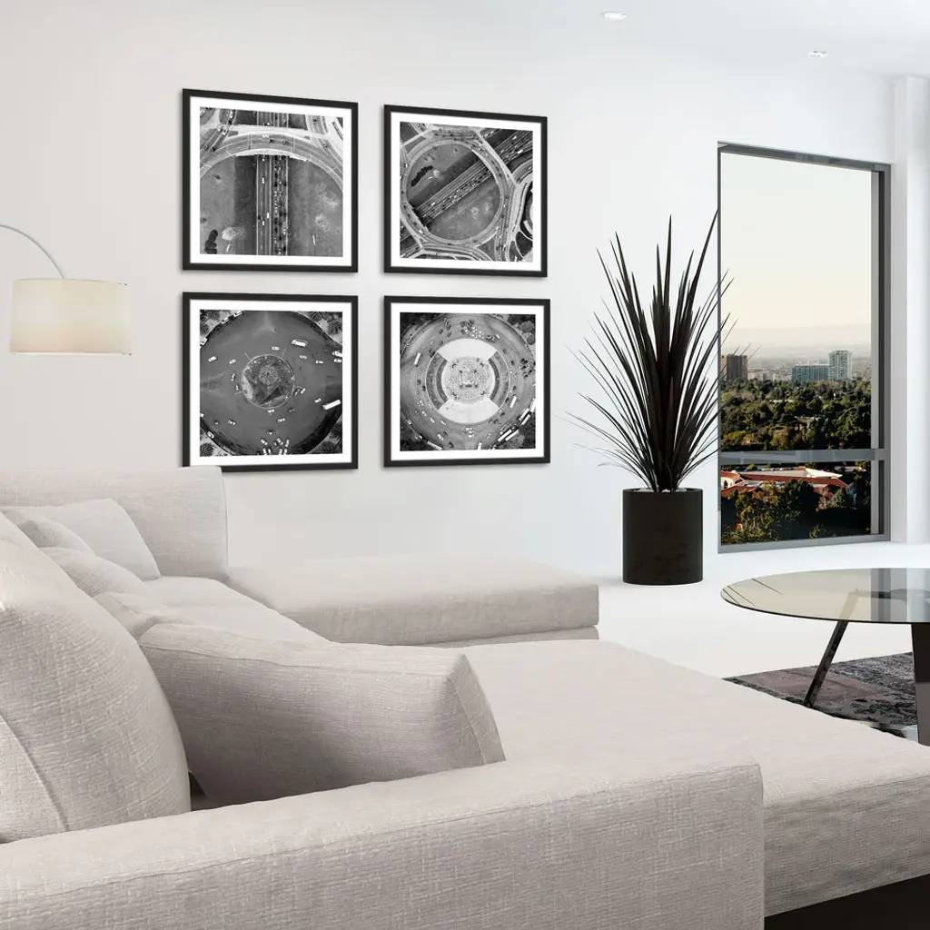 - (4) panels of 32x32- Top quality Giclee print on high resolution Archive Paper- Professionally framed and mounted on acid free archive matte- High quality durable non-warping frame- Arrives ready to hang- Includes a certificate of authenticity- Made in the USA