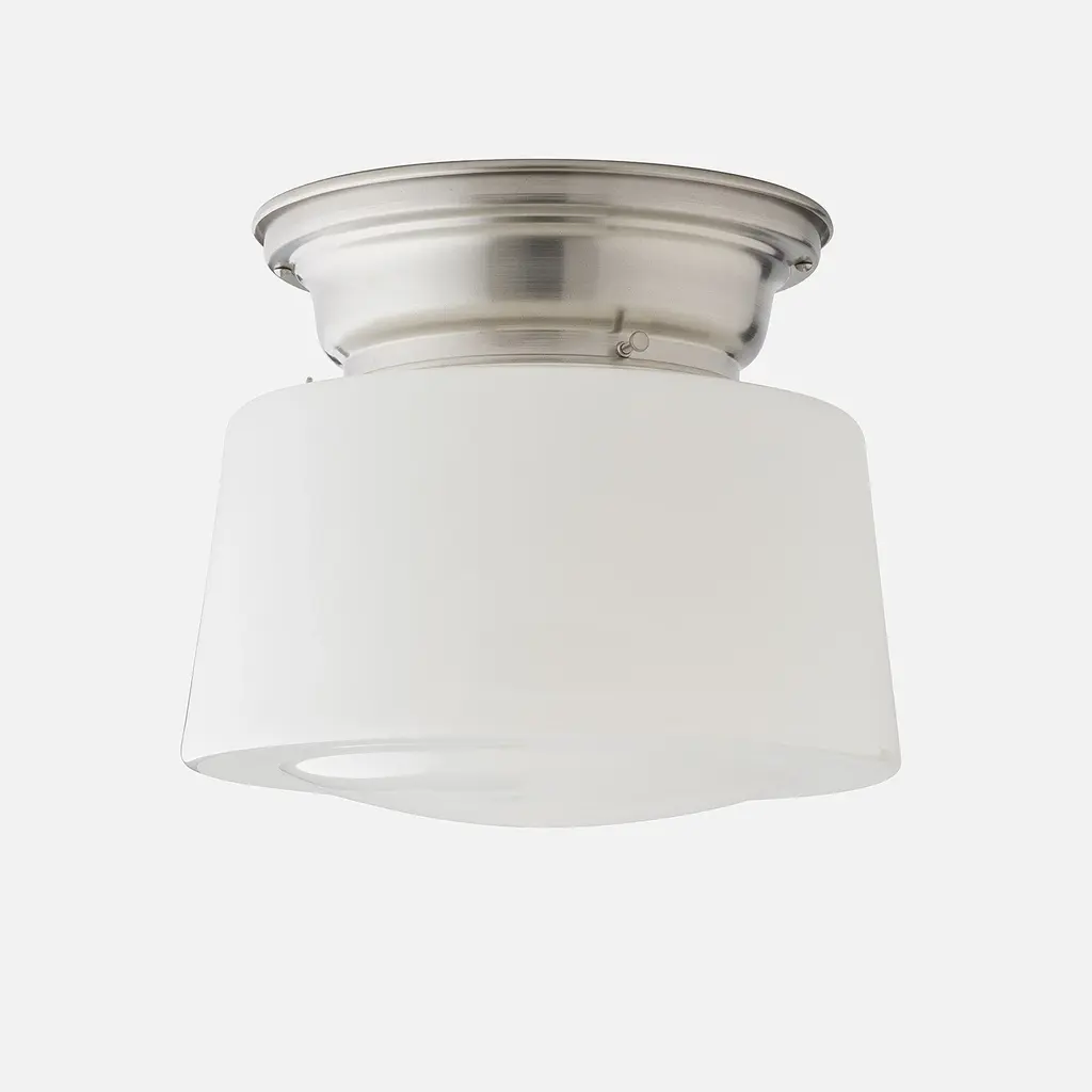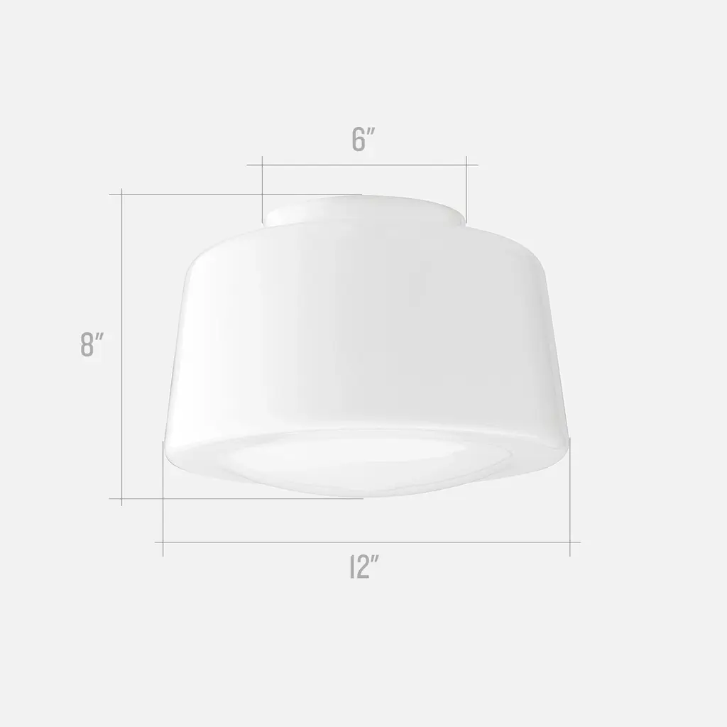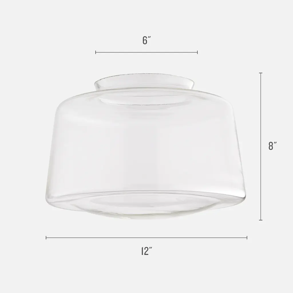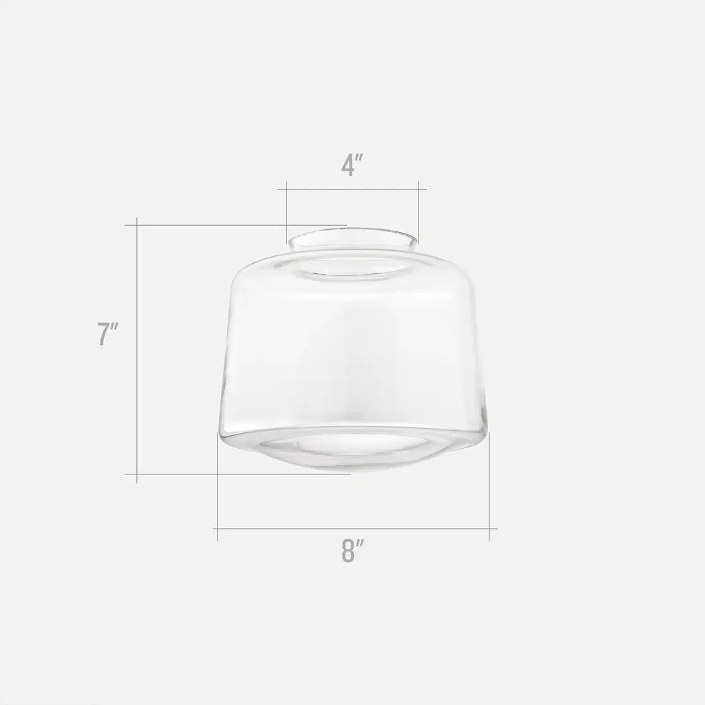 An exact replica from the classic Schoolhouse era of the 1900s to the 1950s, this drum style shade is an iconic, timeless addition to any room or decor style. Exclusively crafted on the banks of the Monongahela River in West Virginia, these shades are individually hand-blown in antique cast-iron molds using traditional methods over 150 years old.4" Fitter SizeSmall: 8" W x 7" H6" Fitter SizeLarge: 12" Dia x 8" H