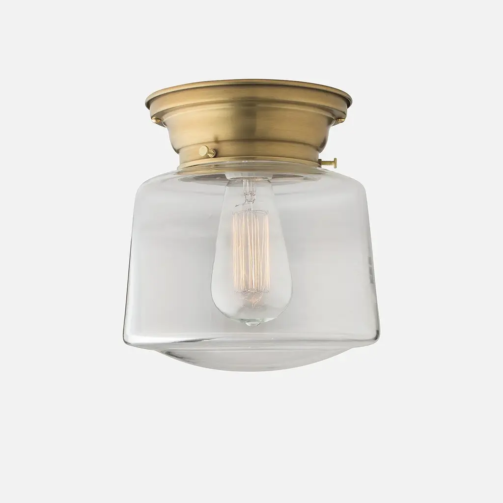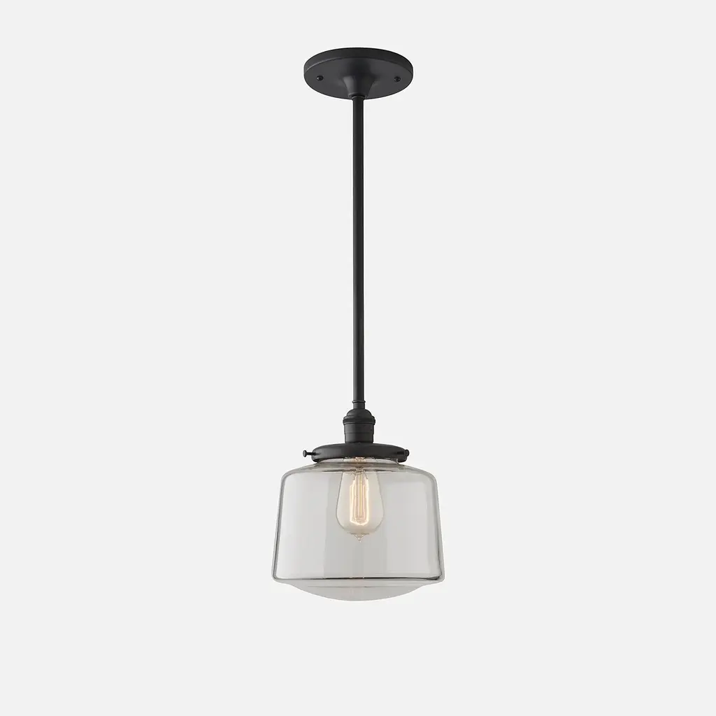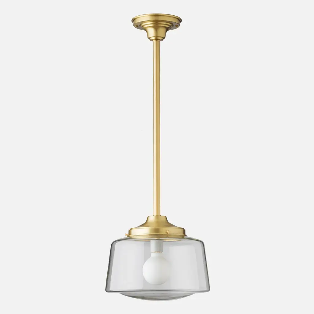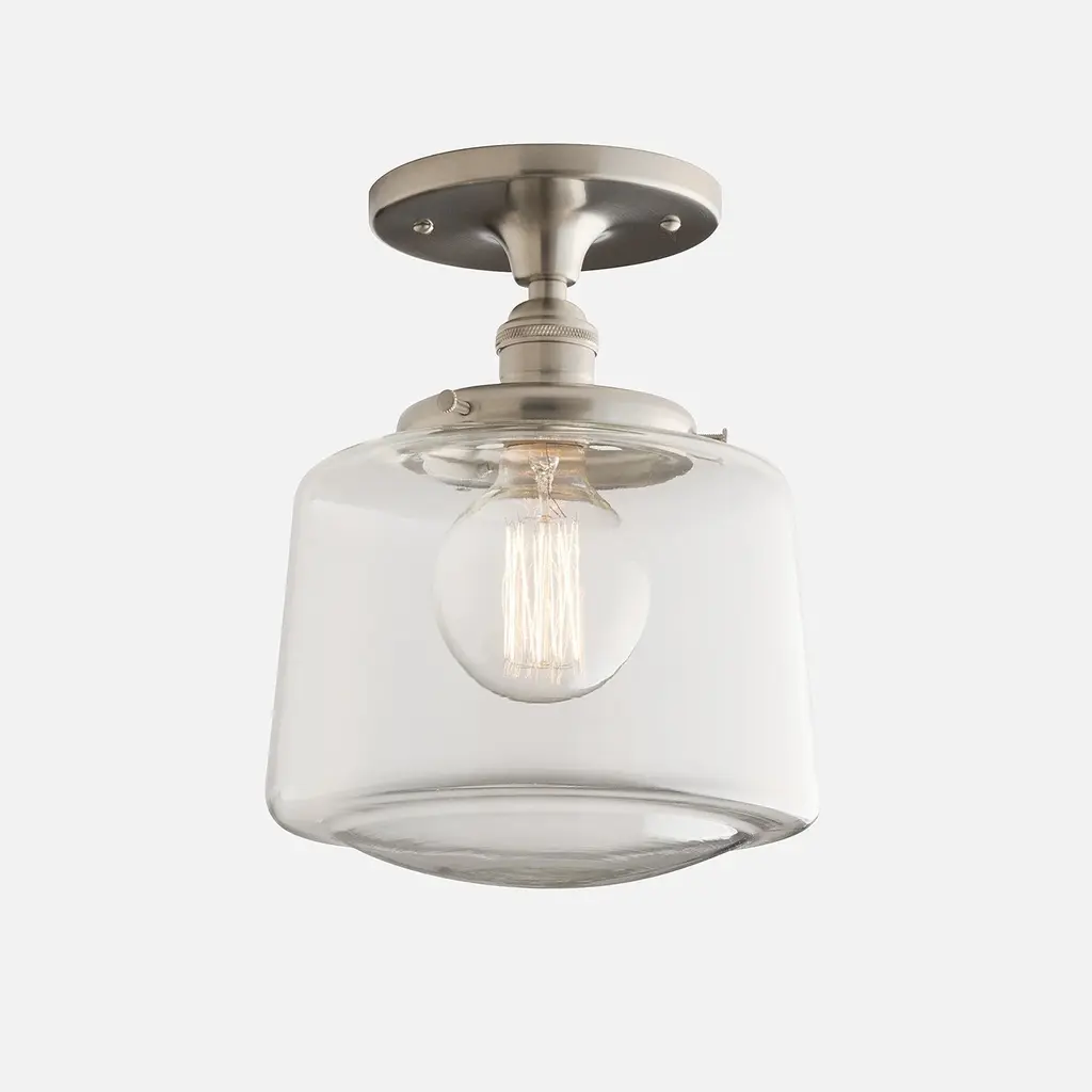 An exact replica from the classic Schoolhouse era of the 1900s to the 1950s, this drum style shade is an iconic, timeless addition to any room or decor style. Exclusively crafted on the banks of the Monongahela River in West Virginia, these shades are individually hand-blown in antique cast-iron molds using traditional methods over 150 years old.4" Fitter SizeSmall: 8" W x 7" H6" Fitter SizeLarge: 12" Dia x 8" H