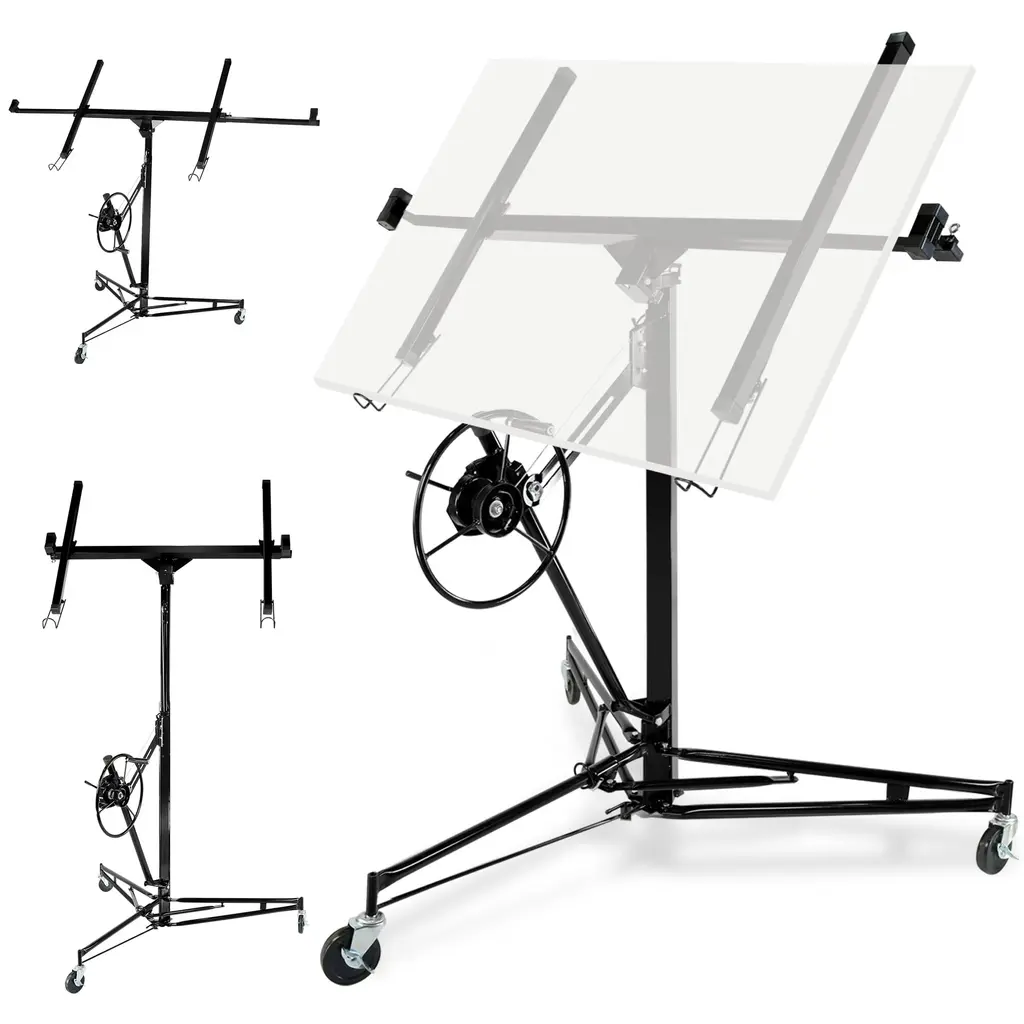 Drywall Lift 150lb Capacity Heavy Duty Sheetrock Hoist W/telescopic Arm & Locking Wheels, Steel Panel Lifter For Ceiling - Black