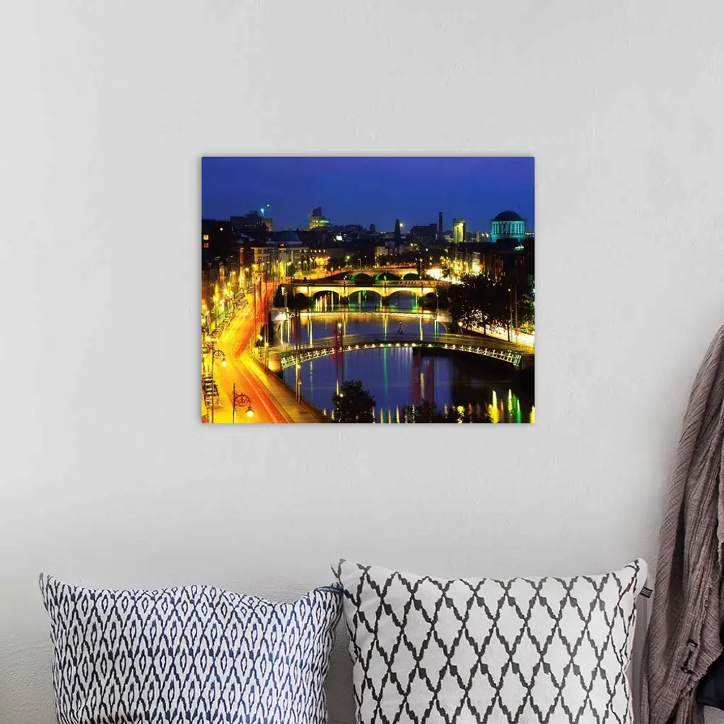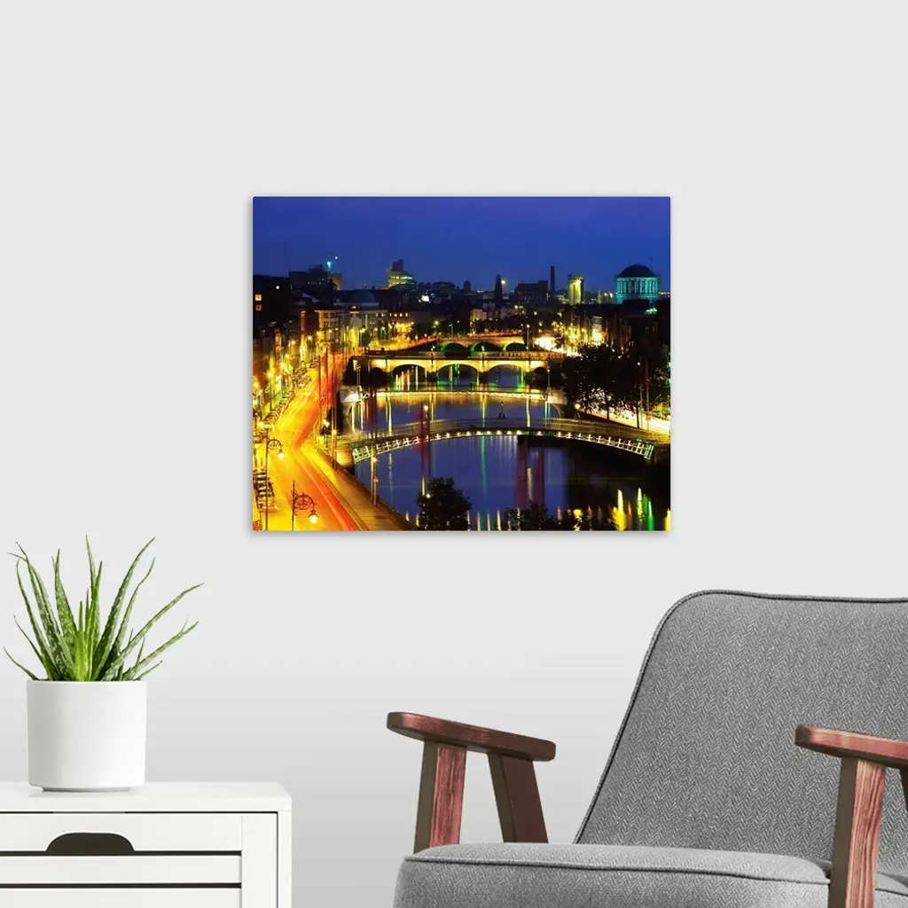 Dublin, Co Dublin, Ireland; View Of The River Liffey At Nighttime wall art for home and office decor. Discover canvas art prints, photos, mural, big canvas art and framed wall art in GreatBigCanvas.com's varied collections.