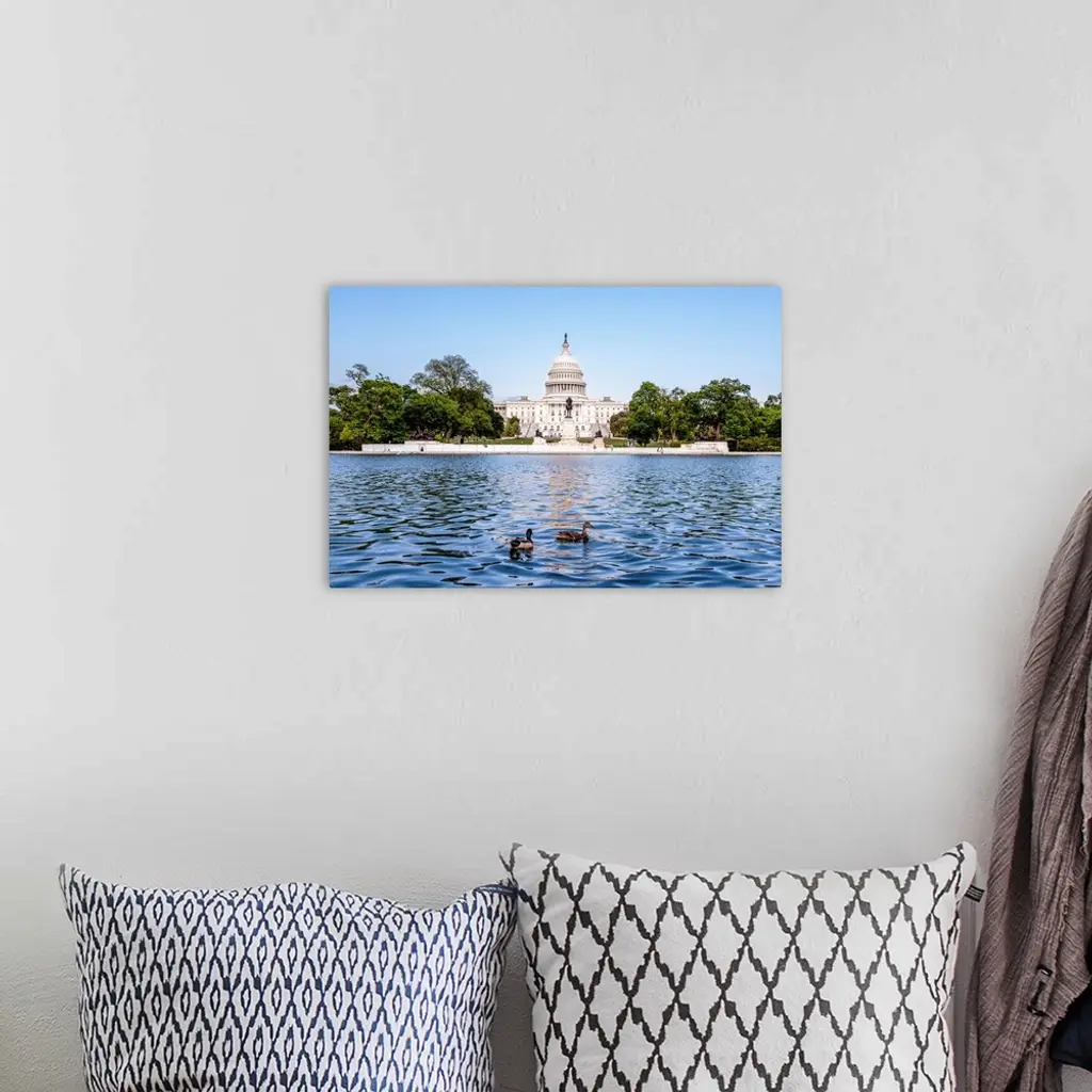 Ducks In Capitol Reflecting Pool in front of US Capitol Building, Washington DC.